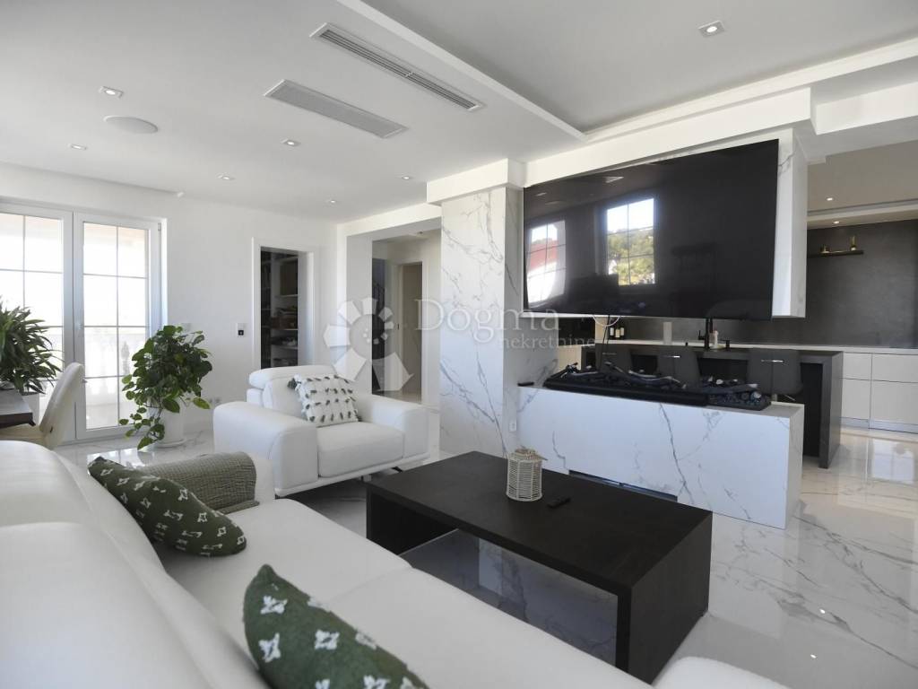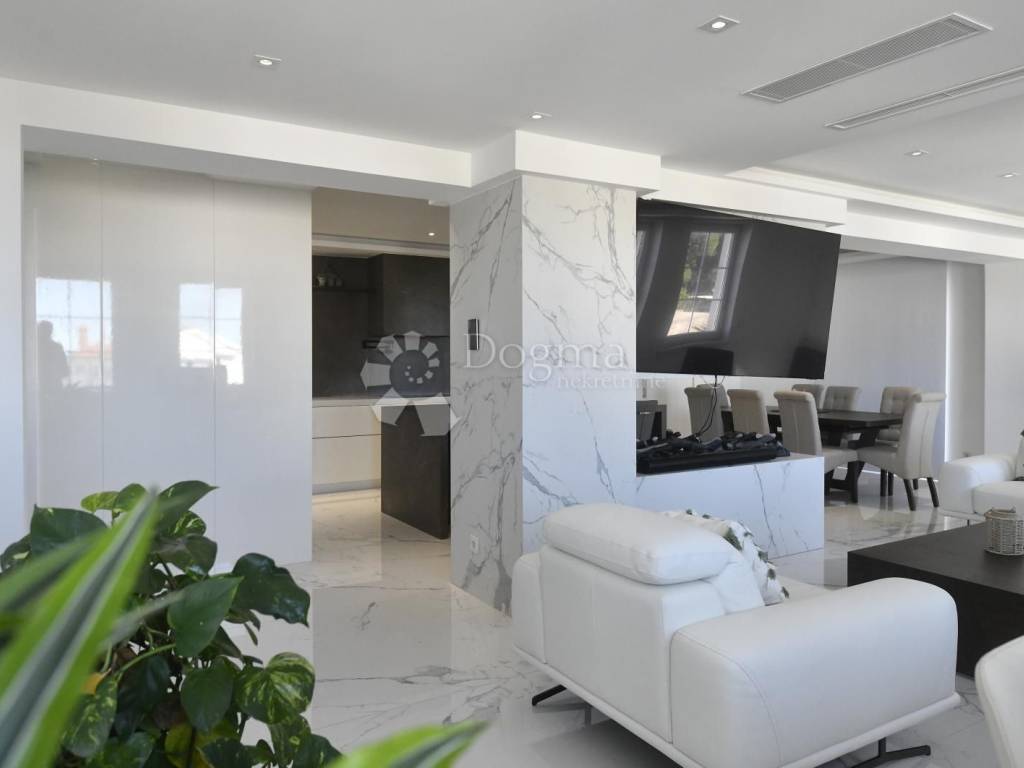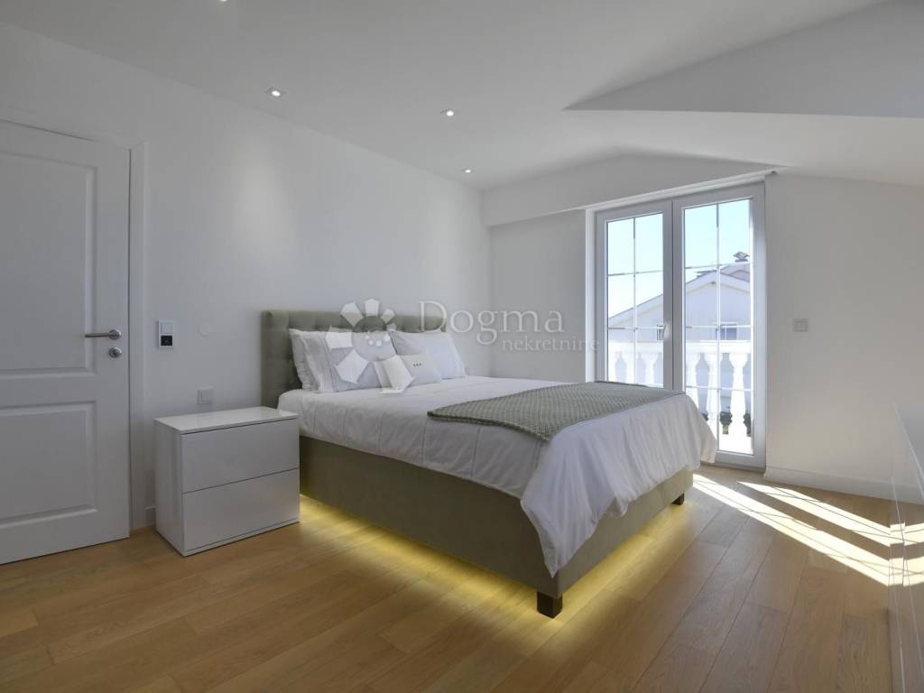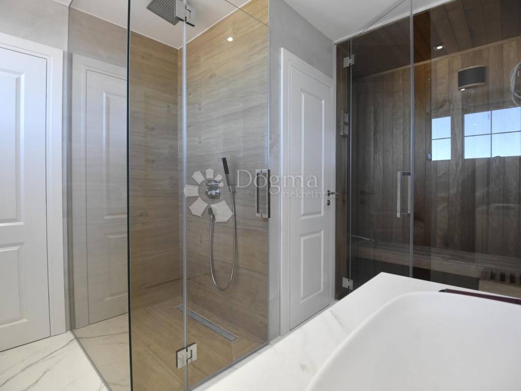 The interior, spanning a total of 359.87 m gross (of which 251.76 m is net usable area), radiates modern elegance. Triple-layer oak floors bring warmth to the bedrooms, underfloor heating powered by a heat pump and ceiling air conditioning ensure perfect comfort all year round, while the smart home system controls lighting, shades, and climate effortlessly responding to your touch or voice, as if it knows your wishes before you speak them.