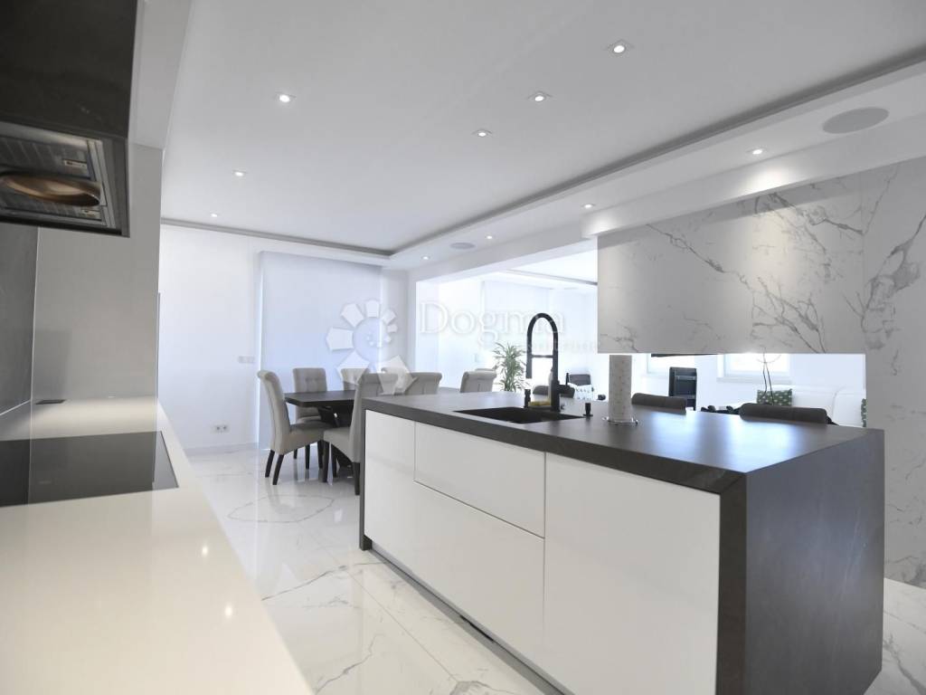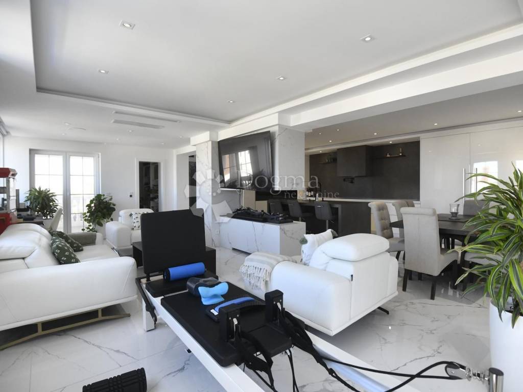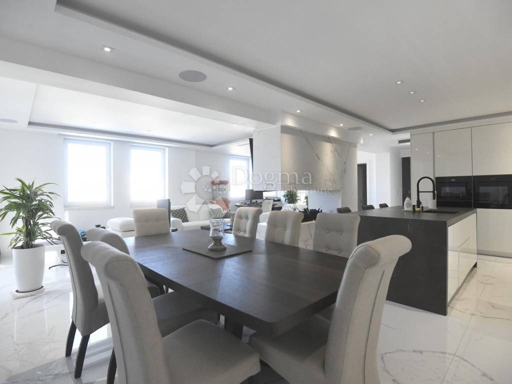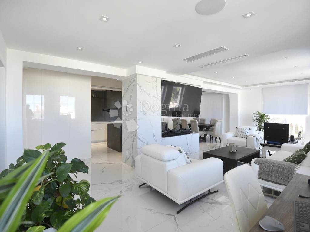 The interior, spanning a total of 359.87 m gross (of which 251.76 m is net usable area), radiates modern elegance. Triple-layer oak floors bring warmth to the bedrooms, underfloor heating powered by a heat pump and ceiling air conditioning ensure perfect comfort all year round, while the smart home system controls lighting, shades, and climate effortlessly responding to your touch or voice, as if it knows your wishes before you speak them.