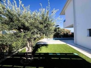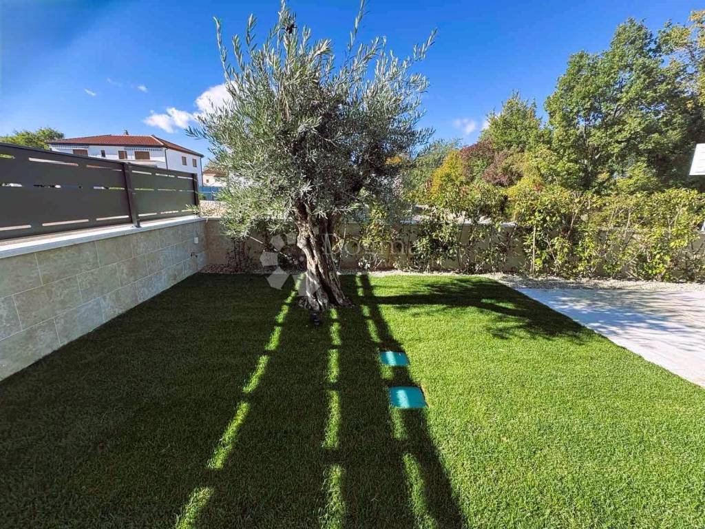 The garden of approx. 180 m is landscaped with Mediterranean plants and centuries-old olive trees. The property includes two private parking spaces.