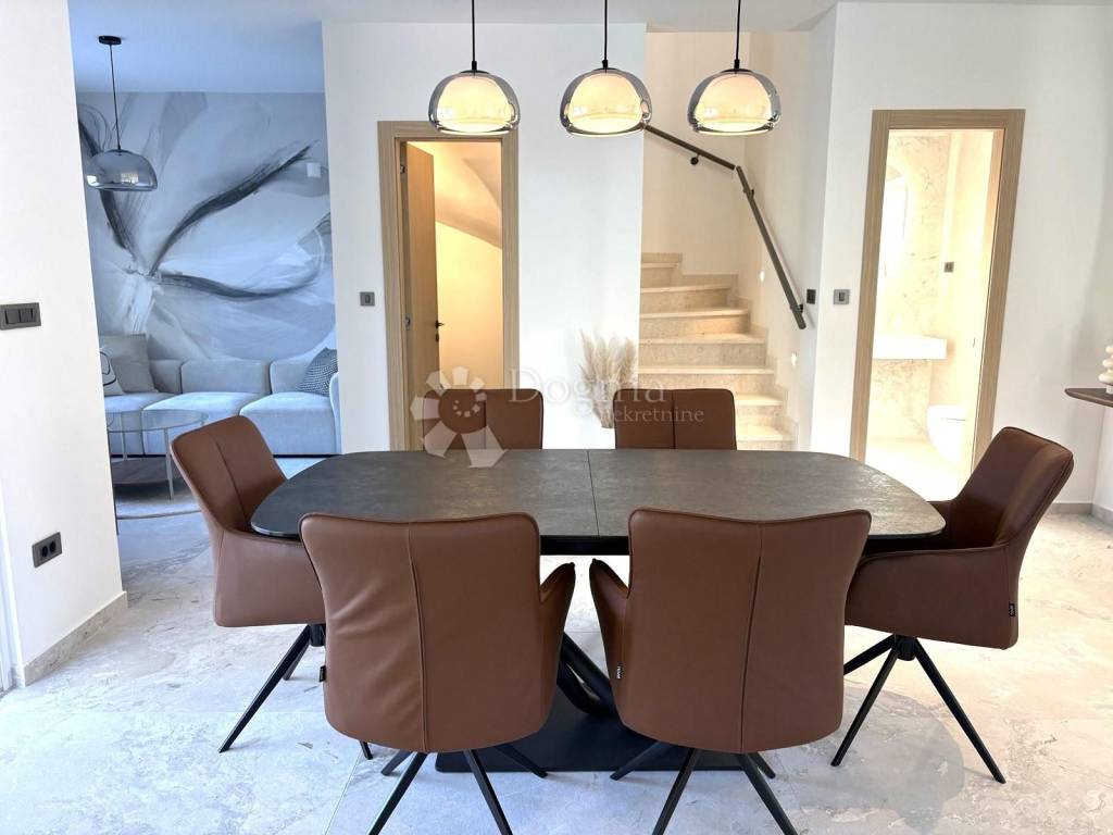 We present to you a charming semi-detached house with a swimming pool, located in a peaceful area near Malinska. With a total living area of 109 m, the house is spread over two floors ground floor and first floor.