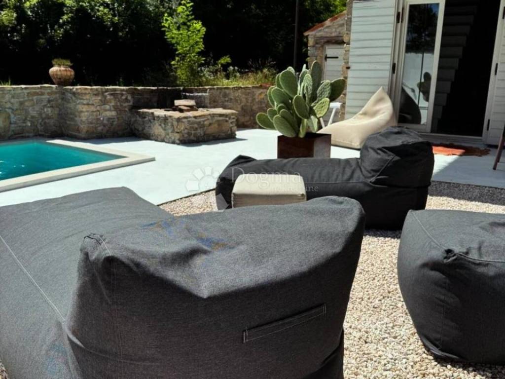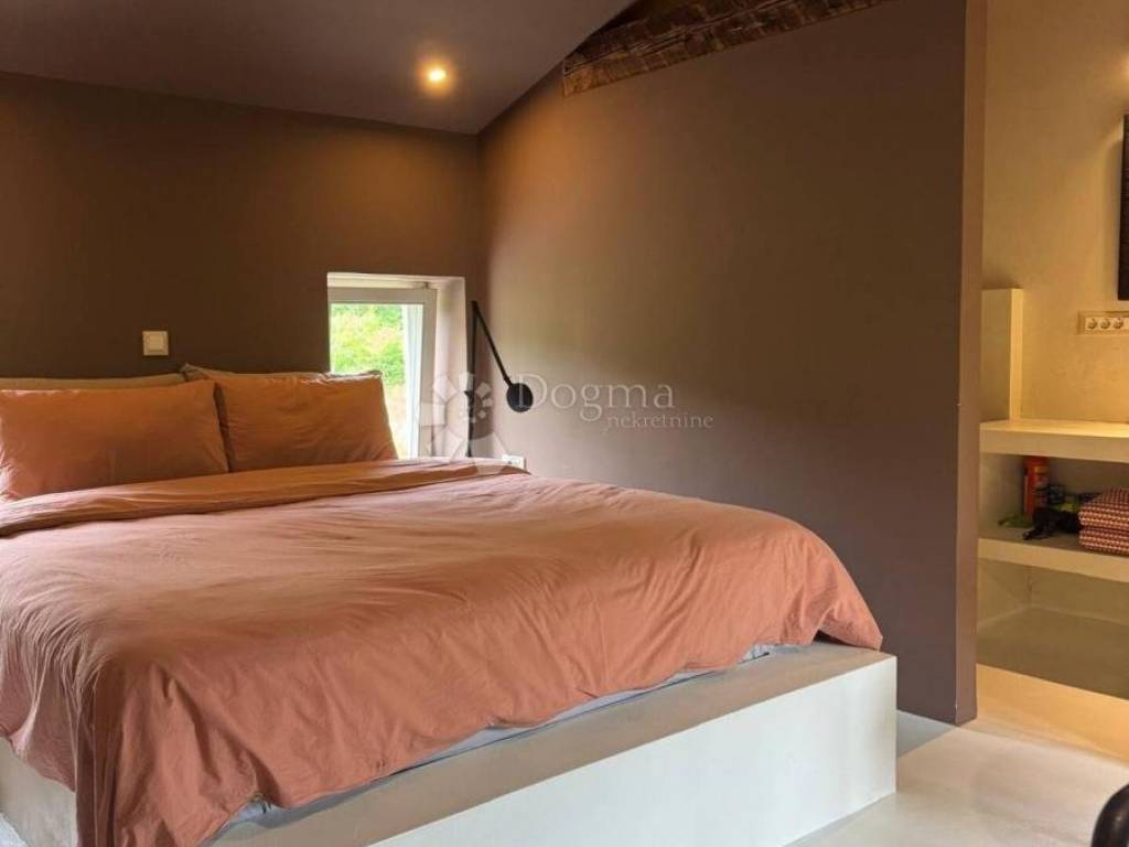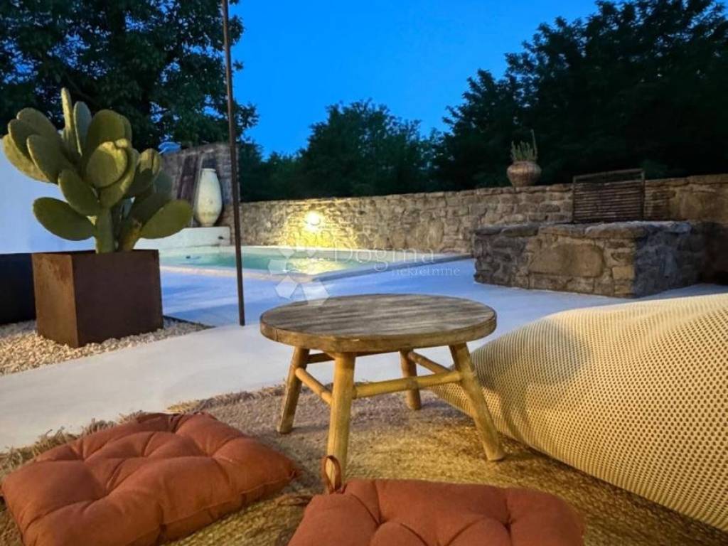 Nestled on the hillside below the magical Motovun, among vineyards, olive groves, and forests full of truffles, is an intimate stone villa created for two.