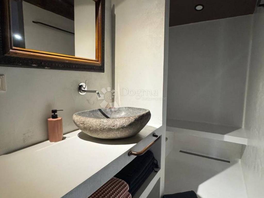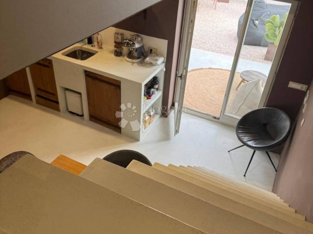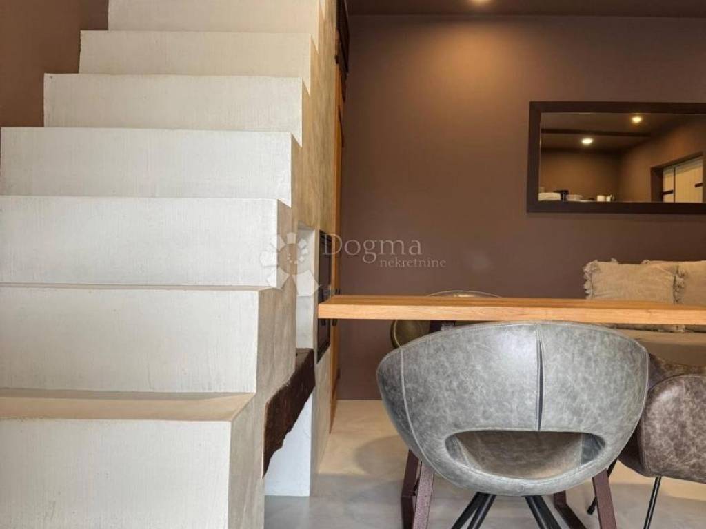 With stone that tells stories of the past and an interior that combines rustic warmth with contemporary design, this house is conceived as a personal sanctuary. On the ground floor, there is an open living area with a fireplace and kitchen, while upstairs hides a bedroom with a bathroom discreetly tucked away like a private world of peace.