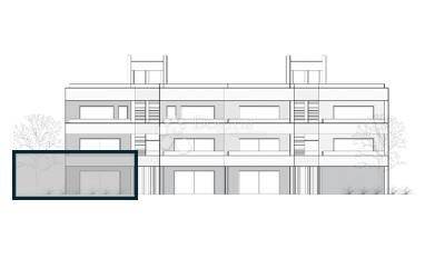 Apartment SB1, with a net living area of 126.10 m, offers a perfect balance of indoor and outdoor living. The spacious living room with kitchen and dining area (33.80 m) flows onto a covered terrace (19.83 m) and an open terrace (32.62 m). Two bedrooms (9.70 m and 11.70 m) provide privacy and comfort. The apartment also includes one bathroom (4.60 m), a separate WC (2.50 m) and a hallway.