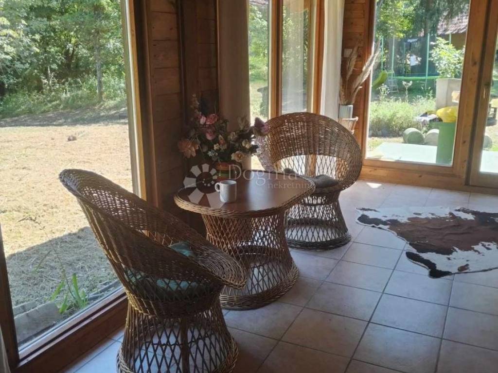 Do you believe in miracles? Yes, you see, in a sea of monotonous buildings, this beauty stands out and comes with as much as 8 hectares in one piece. We proudly present this lovely rural property near Petrinja with a rich forest surrounding it and through which it has its own marked access road. It is located in a quiet village with only a few permanent residents - peace and tranquility are guaranteed as you tour the main house, the guest house, the second guest house which currently serves as a workshop and a garage. Ducks swim carefree in the pond, there is a well just in case and watering the garden. Connections to the city water supply and electricity are active. Firewood consumption is minimal, since the house has excellent insulation on all sides. The old indigenous house has been completely restored. The ground floor consists of an entrance hall, utility room, open space concept, kitchen, dining room, living room and covered terrace; and a bathroom. Numerous windows complete the sunny impression in this property made of old oak planks. The first floor of the main house consists of two bedrooms, a toilet, a landing and with a folding staircase you can easily climb to the attic - perhaps a studio or an additional room? The guest house has a hall with a fireplace and a bedroom. The 2nd guest house has a shower and a toilet Everything is stylishly integrated into the natural environment and no urgent repairs are needed. Please note, the land is in one piece and it is possible to fence off 8ha and adapt the property to the needs of the future owner. The documentation and ownership are in order and the property is being sold furnished, viewing dates and videos are available at 099/850-6552 with Danica Lovrić
