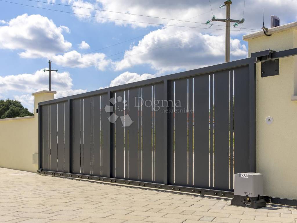 The total square footage of the yard is 1002 m with a complete horticultural arrangement of the lawn, and the yard is fenced with a sliding, electric gate of 5 meters for the entrance to the yard.