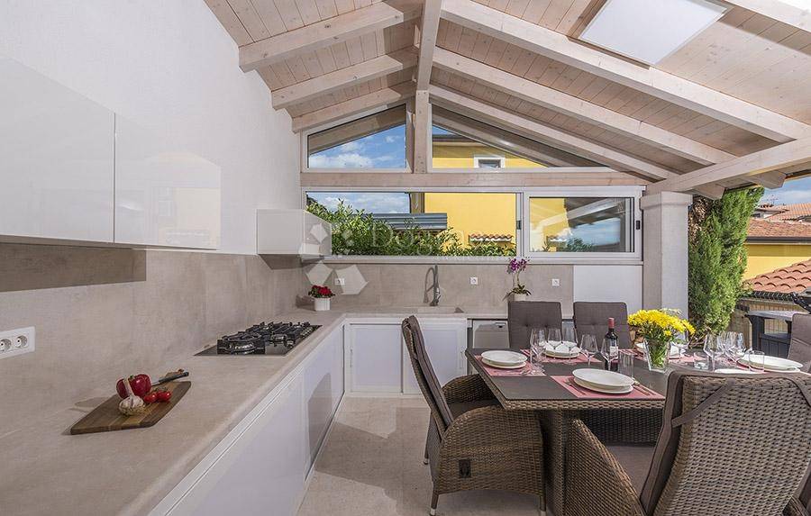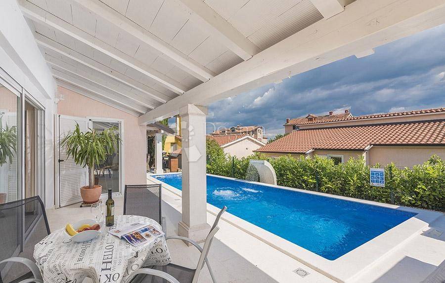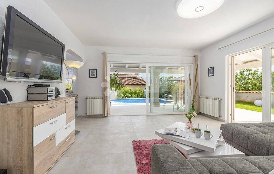 In a well-organized residential area near the town of Poreč, a renowned tourist destination, we offer for sale a high-quality single-story house with a heated swimming pool, situated among family homes and holiday villas. The location, just about 8 km from the center of Poreč, provides an ideal balance of privacy, natural surroundings, and proximity to all essential amenities.