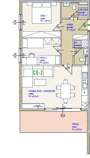 NEW BUILDING (CS-2) TWO-BEDROOM APARTMENT IN SEGET DONJI (ground floor)