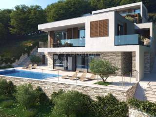 Tlocrtno, vila je pažljivo organizirana na tri etaže. Donji nivo nudi privatnost i tišinu spavaćih zona, uz izravan pristup prostranoj terasi s infinity bazenom, sunčalištem i mediteranskim vrtom. Glavna stambena etaža sadrži otvoreni dnevni boravak s kaminom, dizajnersku kuhinju i blagovaonicu, dok gornji kat uključuje radnu ili multimedijalnu zonu, dodatne spavaće sobe ili gostinjske jedinice. Svaka etaža ima poveznicu s vanjskim prostorom bilo kroz intimne lođe, velike terase ili elegantna stubišta u prirodnom kamenu. Projekt predviđa i natkrivenu garažu, spa zonu i sve elemente koji zadovoljavaju najviše standarde moderne luksuzne vile.