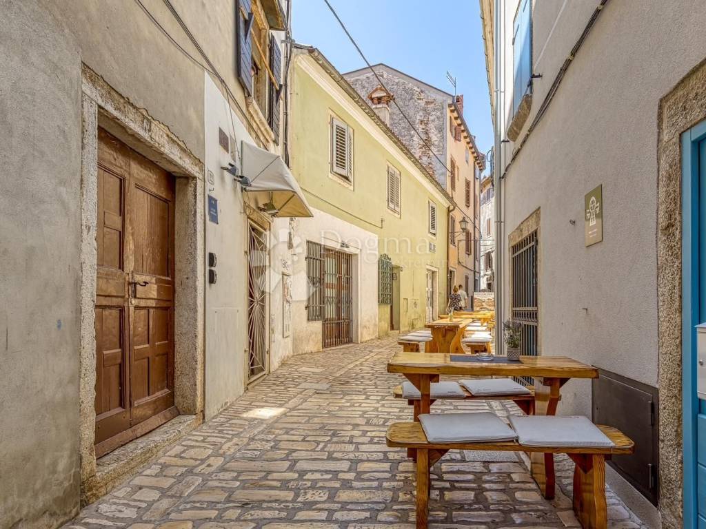 Located in the very heart of Rovinj's historic core, this charming house is just a two-minute walk from the sea, promenades, and numerous cultural and tourist attractions. It spans two floors and features two entrances and an additional rear access, ensuring exceptional functionality and flexibility in space usage.
