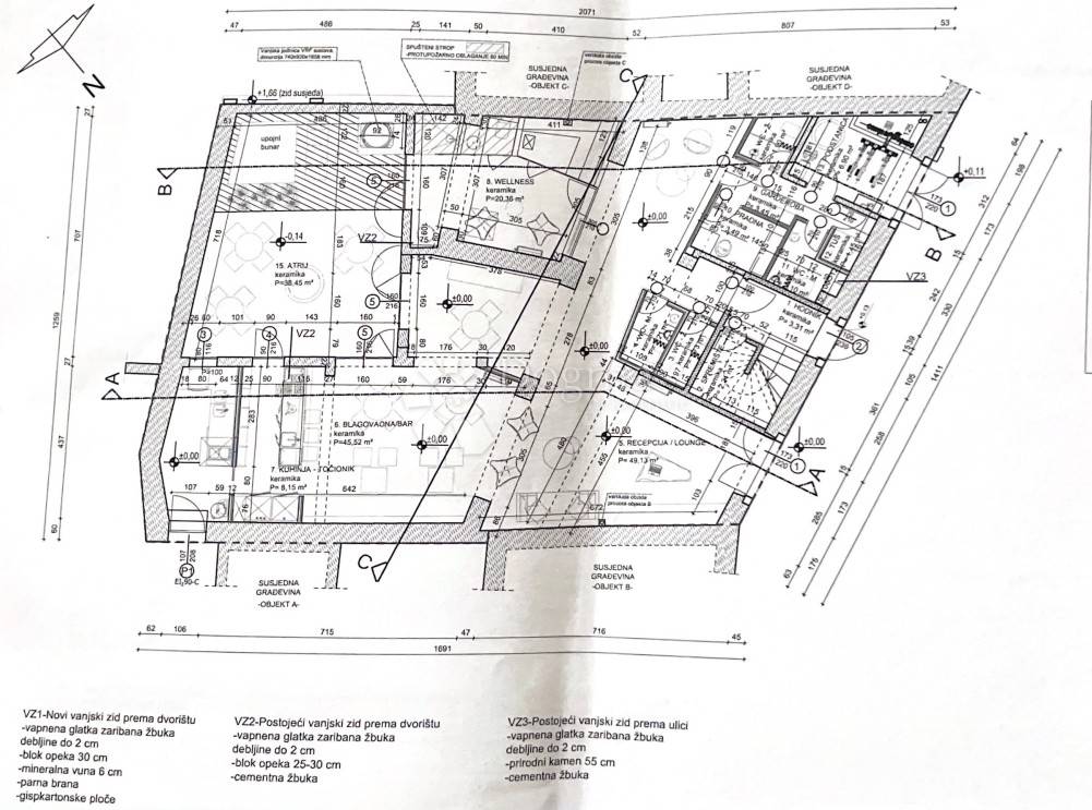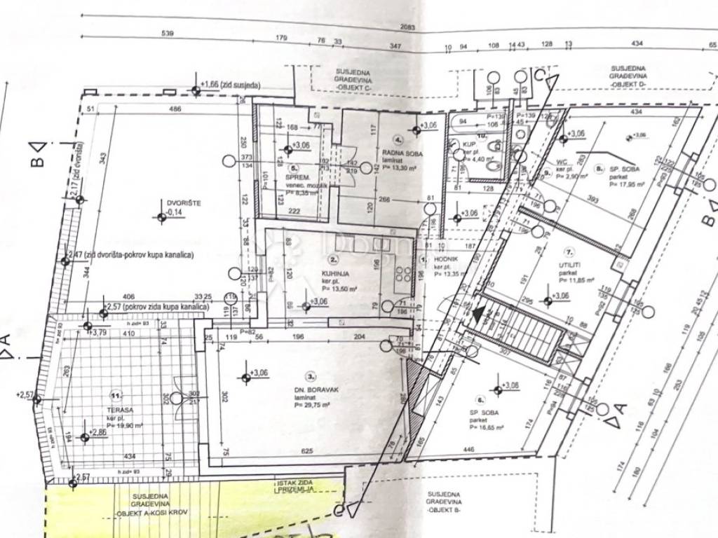 The total gross area of the house is 351 m (net 298 m), with an approved project allowing expansion to 465 m gross (net 403 m) by developing the attic. The planned layout allows for the creation of multiple residential units and amenities such as a wellness area, jacuzzi, or private garden, further enhancing the property's appeal.