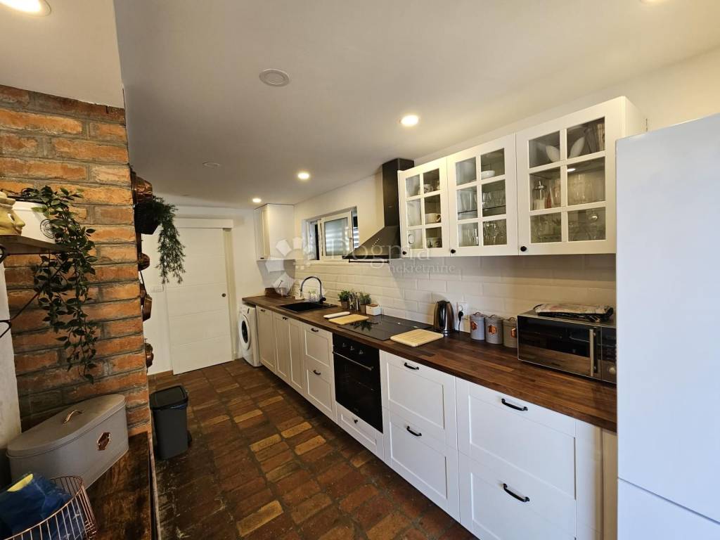 The house is divided into two completely separate apartments. The ground-floor apartment, approximately 30 m in size, offers a cozy layout, while the upper apartment, with 8085 m of space, is situated on the first floor. Each apartment has its own entrance, private barbecue, covered outdoor area with comfortable seating, kitchen, and bathroom.