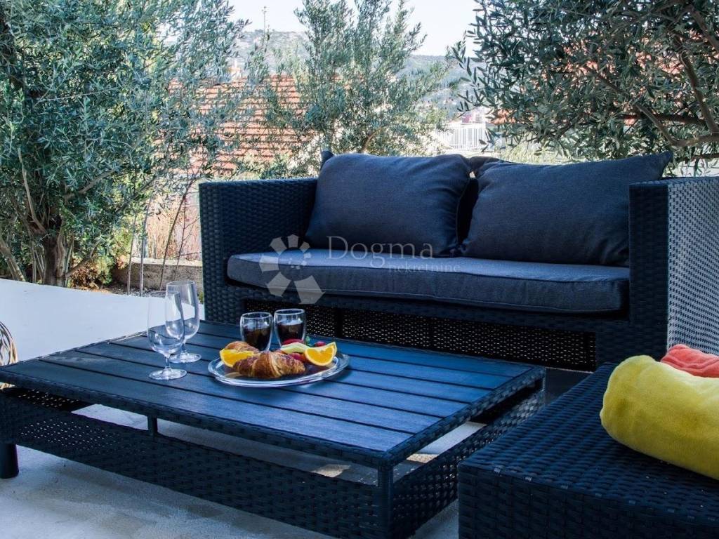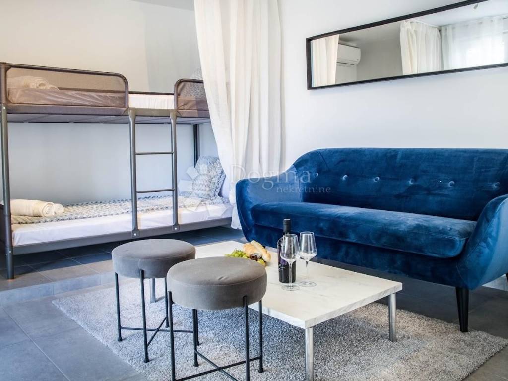 A fully furnished and move-in-ready one-bedroom apartment with a total usable area of 37.65 m is for sale, located in the basement of a well-maintained house with a proven track record in tourist rentals. The property is situated in an excellent location in Rogoznica, just 200 meters from the sea and beach.