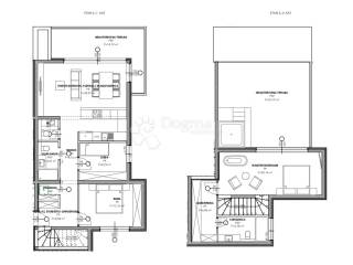 On the second level, there is a spacious bedroom with a built-in bathtub, a private wardrobe, a bathroom with underfloor heating, and a terrace featuring a built-in jacuzzi.