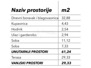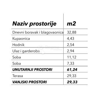 The total indoor living area is 61.24 m, while the terrace covers 29.33 m.