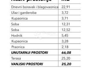 The total indoor living area is 66.08 m, while the terrace covers 25.20 m.
