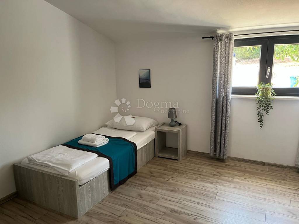 This luxury villa is located in a peaceful and quiet environment, not far from the popular tourist destination of Pješčana Uvala, just 1500 meters from the beach and 4000 meters from the center of Pula. This perfect location provides a unique combination of privacy and proximity to all important amenities, making it an ideal place to relax and enjoy. The terrace and windows of the villa offer a captivating view of the green olive groves and the surrounding nature, creating an atmosphere of complete relaxation and connection with the Mediterranean environment. The villa has a neat ownership (1/1) and no encumbrances, and all necessary documents are fully available, which guarantees security and transparency when buying. One of the main advantages of this villa is the luxurious swimming pool, located in the Mediterranean garden, which is perfect for family gatherings, sunbathing and relaxing outdoors. The construction of the villa included the highest quality materials and modern technologies. 10 cm thick thermal insulation ensures exceptional energy efficiency, while PVC joinery on all windows and doors provides long-lasting and energy-efficient operation of the building. For the comfort of the residents, each room is equipped with air conditioning with heating and cooling functions, while the chimney allows the installation of a pellet or wood stove, which is ideal for the colder months. The villa is also secured with an alarm system and sensors, which further increases the privacy and security of its residents. An automatic irrigation system in the garden allows for easy maintenance of the green areas. The spacious yard of this villa is located on a plot of 598 m, of which 462 m is arranged as a garden, while the remaining space is occupied by the villa and the swimming pool. The yard is surrounded by a high wall, which ensures privacy and security. The yard is simply but functionally arranged, with an emphasis on easy maintenance, and the automatic irrigation system allows for continuous care of the greenery. The main accent of the yard is a partially covered terrace of 25 m, ideal for relaxing and having fun with family and friends. The terrace offers the possibility of setting up a summer kitchen, which further enriches the outdoor space. From the terrace there is direct access to the 33 m swimming pool, surrounded by a sunbathing area, perfect for enjoying the fresh air. The courtyard also offers panoramic views of the olive groves and the surrounding forest, creating the impression of an oasis of peace and quiet. The layout of the villa's rooms on three floors allows for functional and comfortable living. Upon entering the villa, from the parking lot right in front of it, we come to a spacious lobby that connects three spacious bedrooms, and an additional bathroom and toilet on this floor, which makes the space perfect for everyday use. The main "master" bedroom is located on the floor above, accessed by an internal staircase, and the space is completely isolated from the rest of the villa, providing privacy and peace. This bedroom has its own bathroom and can, according to the owner's wishes, be converted into a private office, gym or some other functional room. On the lowest floor of the villa there is an open space area, without partition walls, which creates a feeling of spaciousness and light. Here are located the living room, dining room and modern kitchen, and an additional guest bathroom makes this space practical for family and guests. Large windows allow for plenty of natural light, creating a pleasant atmosphere and a seamless connection with the outside environment. This villa is a perfect blend of luxury, comfort, privacy and nature, providing exceptional conditions for enjoying everyday life, while being close to all the amenities that Pula has to offer. It is ideal for families, lovers of peace and nature, as well as for all those who want a luxurious life in close proximity to the sea and cultural attractions.