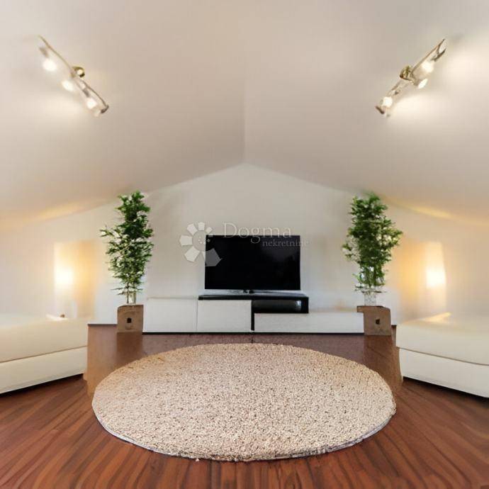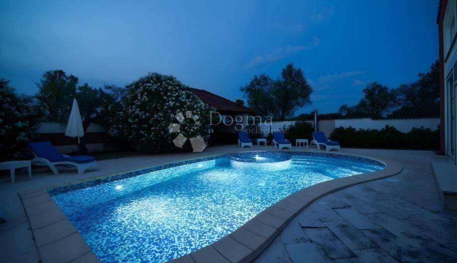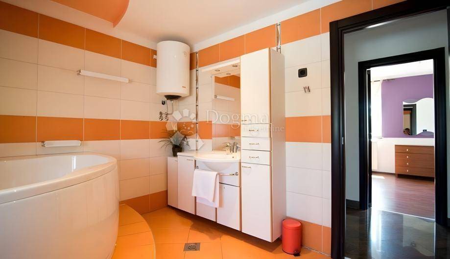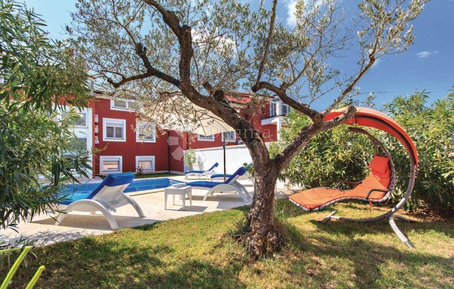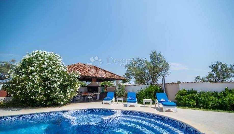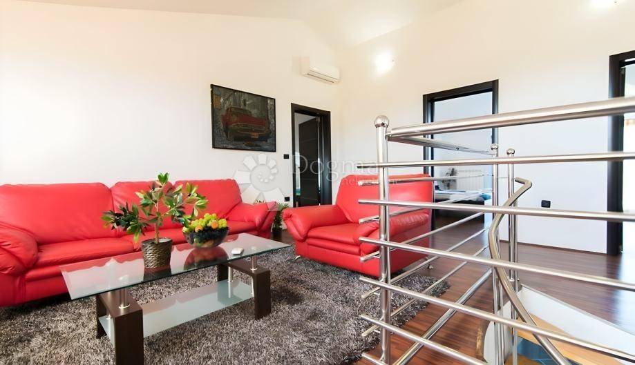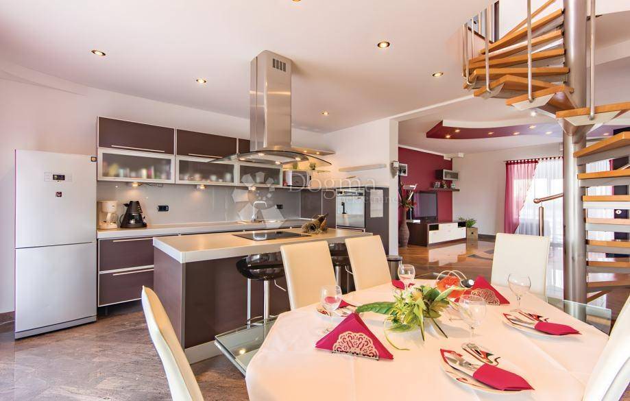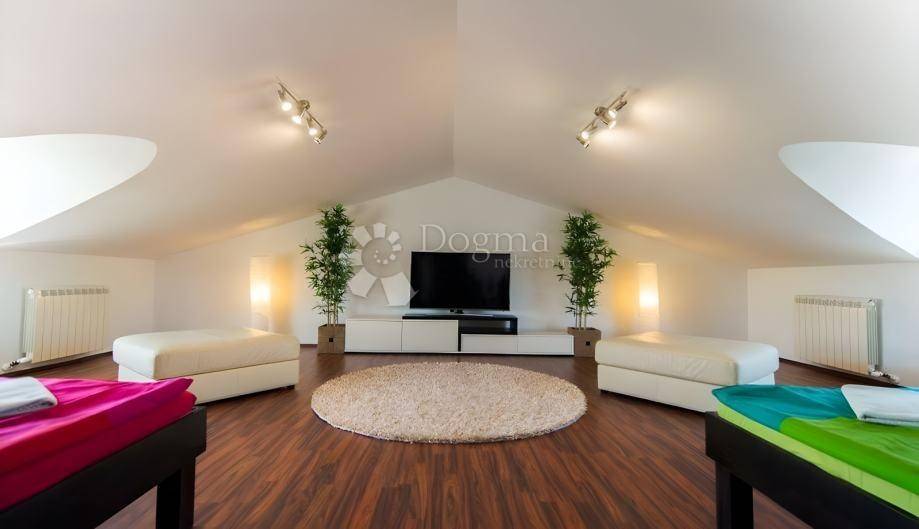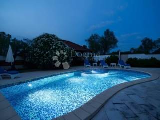 Beautiful semi-detached house with swimming pool - ideal for living or investment In a quiet village, not far from the city center, is this beautiful semi-detached house that offers the perfect combination of comfort, privacy and functionality. Built in 2007, with the last renovation in 2021, this property offers a modern and pleasant living space. The house is spread over three floors: basement, ground floor and first floor. The ground floor consists of a spacious living room connected to the kitchen and dining room, which creates a pleasant and open space for everyday living. There is also a bedroom, a children's room, a bathroom with a bathtub and a spacious terrace with access to the pool, ideal for relaxing and socializing. Upstairs there are two bedrooms and one large room with four beds and an additional living room. Also, on this floor there is a terrace and an additional toilet. The basement includes a spacious gym and a two-car garage. The house is equipped with gas central heating, and air conditioning units are installed on each floor, ensuring a pleasant temperature throughout the year. It is fully furnished and currently used as a summer rental, making it an excellent investment opportunity. Located in a quiet area, close to shops and a bus station, this property offers everything you need for a comfortable family life or a successful tourist rental. STEFANO PERUŠKO ASSISTANT IN MEDIATION Mobile 099/721-0395 stefano.perusko@dogma-nekretnine.com For more information and to arrange a viewing, please contact us.