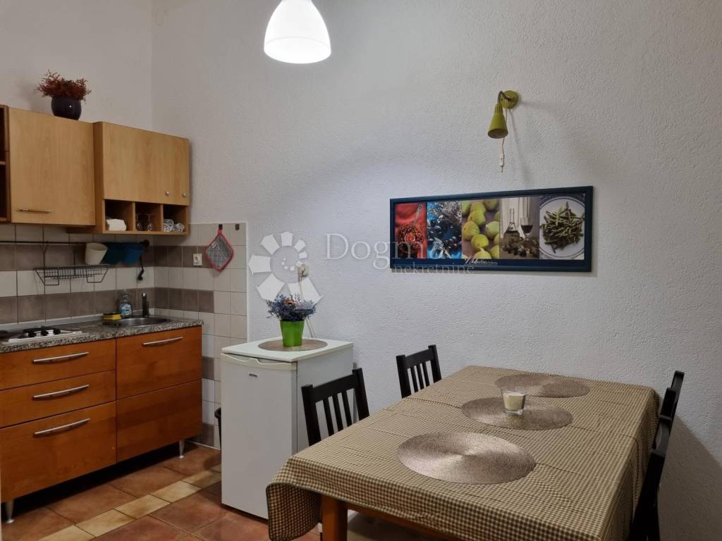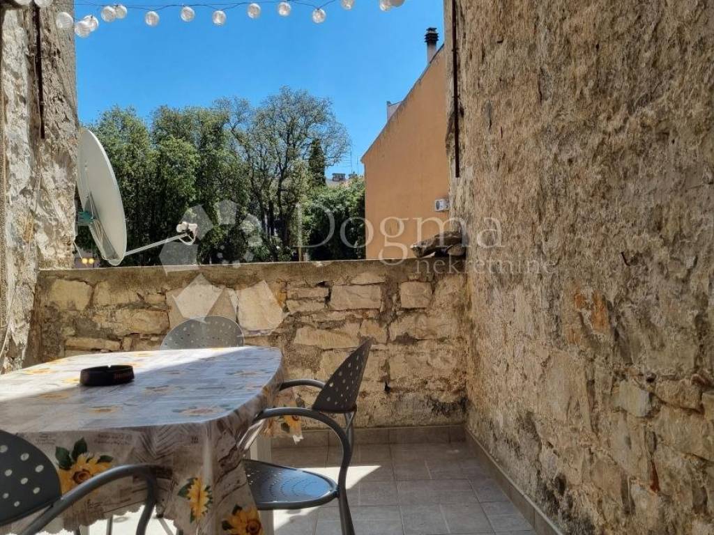 In the very center of Pula, a building with a 4th floor and business space on the ground floor is for sale. The building has a floor plan area of 40 m2 and each floor is a separate residential unit connected to each other by a staircase. The apartment on the 1st floor has an area of 39.2 m2 and consists of a living room, kitchen, hallway, bathroom, bedroom and terrace.