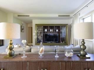 On the first floor, you will find a spacious living room with a fully equipped kitchen, dining area, and a cozy seating space with a fireplace that opens to the garden and pool. This open concept creates a perfect environment for gatherings and family get-togethers.