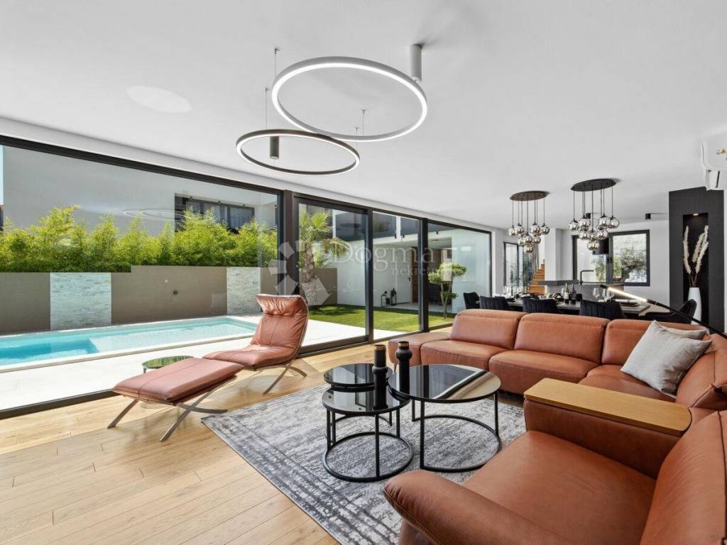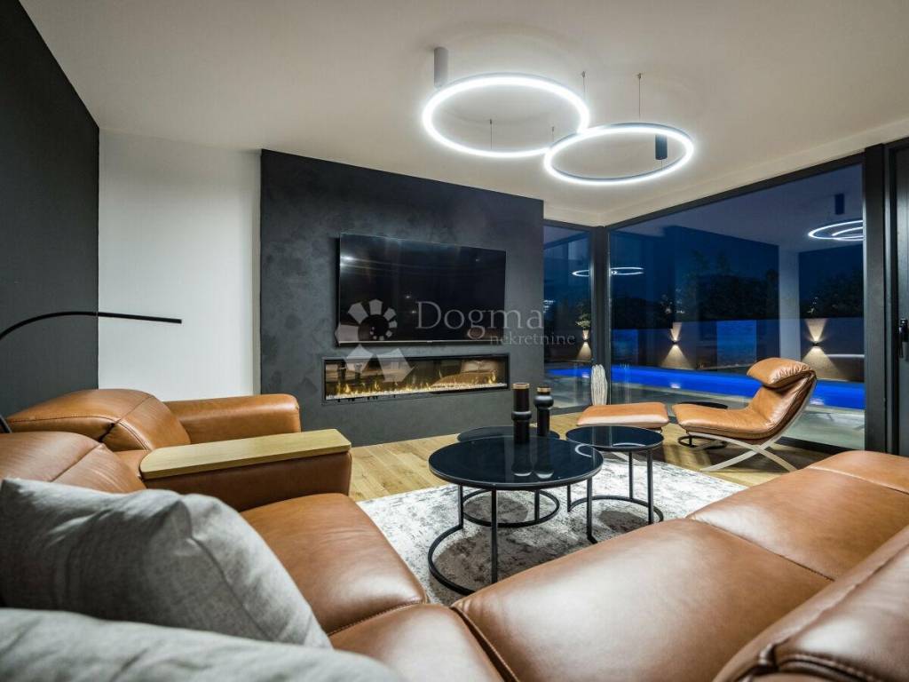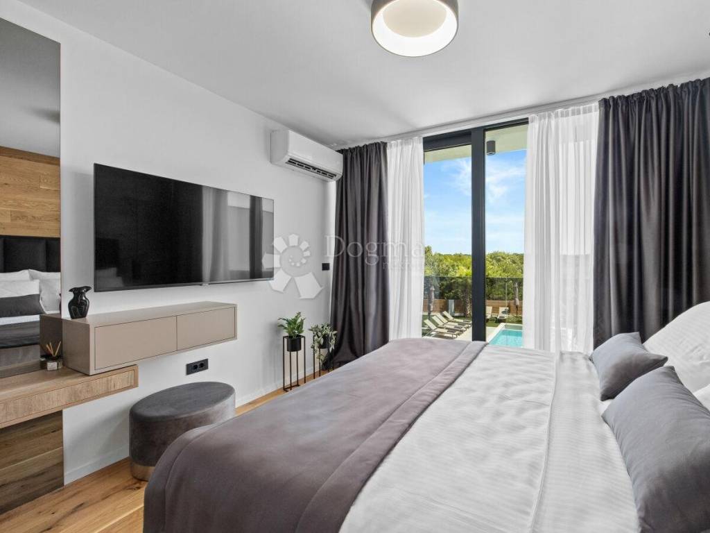 In the beautiful neighborhood of Medulin, just 1 km from the crystal-clear sea, stands this modern and attractive villa covering a spacious 220 m. This property offers the perfect blend of luxury, comfort, and natural surroundings, making it ideal for family living or as a perfect vacation destination.