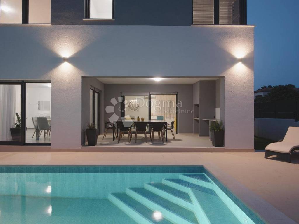 For sale is a modern house with a pool, located in a quiet suburb of Pula. The house has a total area of 172 m, consisting of a ground floor and the first floor, ideal for family living or as an investment in tourism. The house already has a well-established rental business model.