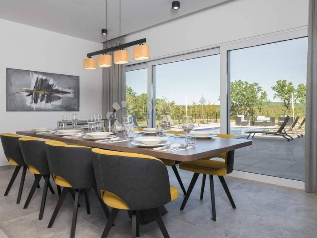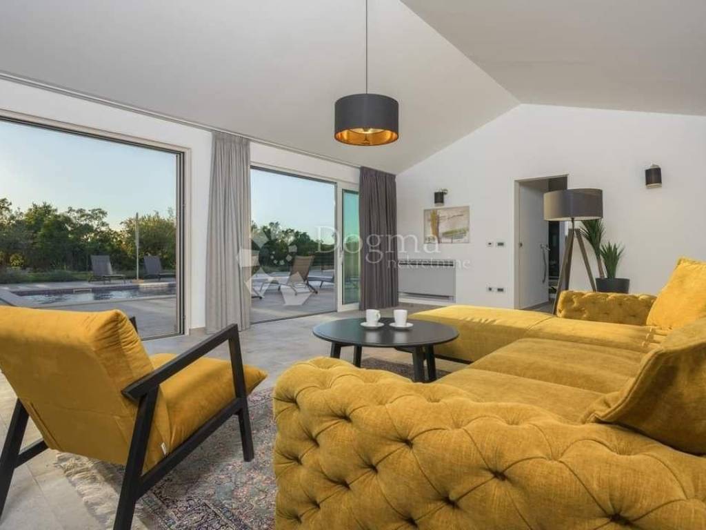 The glass rocks that stretch through the entire ground floor look in the direction of Labin and give a handful of sunlight to completely merge with nature and greenery.
