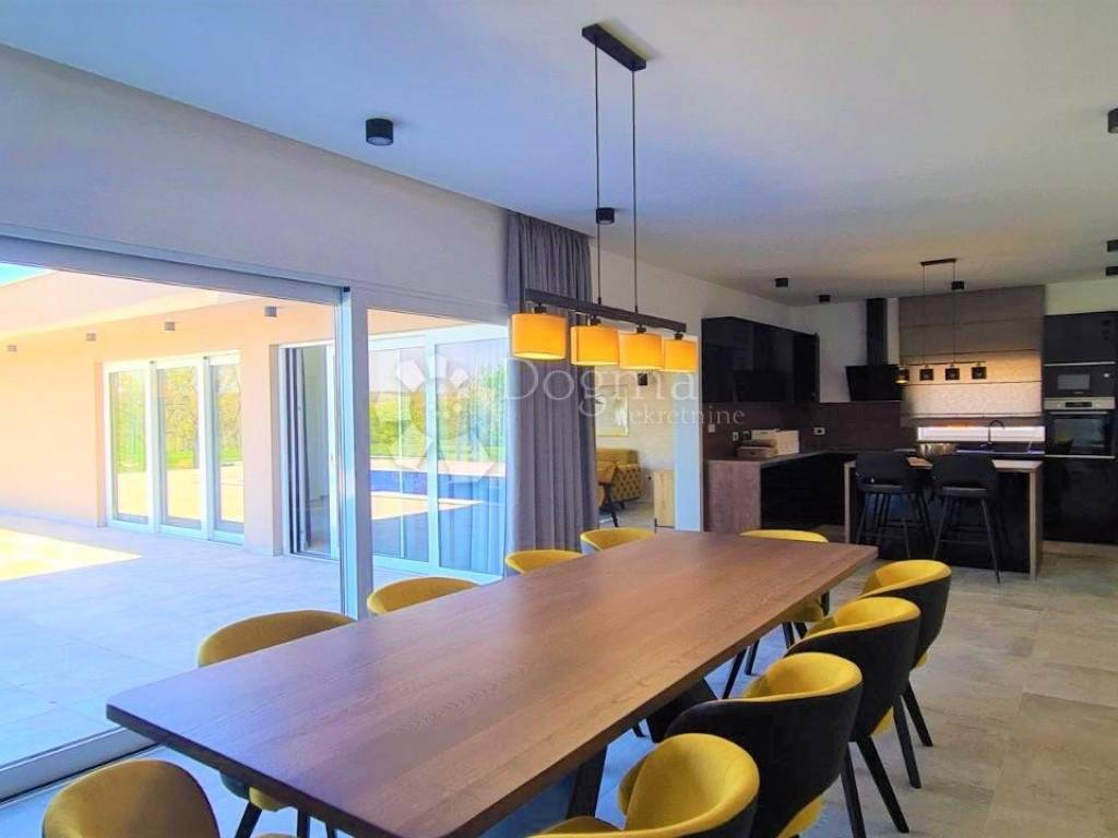 During the hot summer months, use the beach pool size 10x4 for complete refreshment and relaxation, the heat pump allows you to use the pool even on colder days. Also, by the pool there is an indispensable summer kitchen with a gross area of 30m2, which is surrounded by glass rocks so that nothing would separate you from nature.