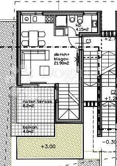 An apartment of 77.83 m2 is for sale in a new building of top quality in the immediate vicinity of Umag. The apartment consists of an entrance area, a living room and a kitchen, 2 bedrooms, a bathroom and a niche for a washing machine and boiler. The apartment also has 2 terraces with an open view of the sea and the surrounding area. The apartment also has one covered parking space and one uncovered.