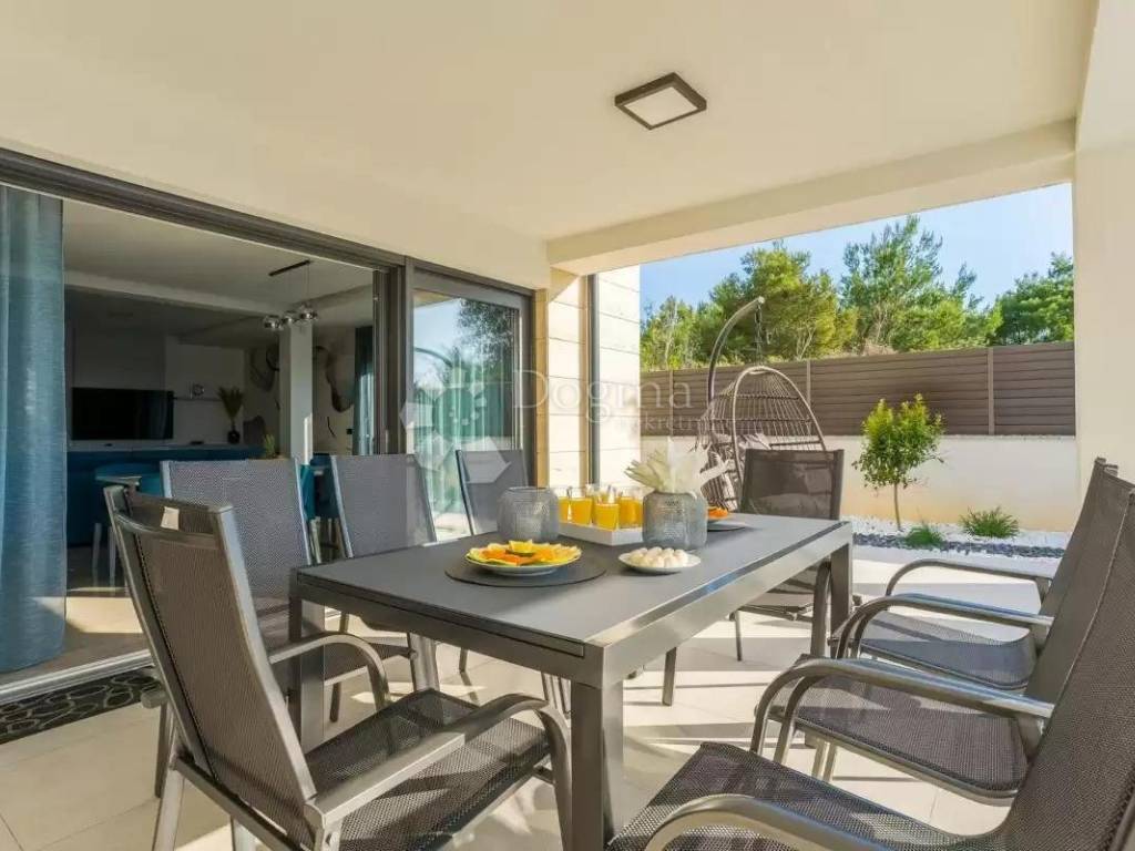 For sale is a luxurious villa in Zaton, modernly and designerly decorated and furnished with attention to every detail. Its garden, designed with the same precision, emphasizes functionality and comfort.