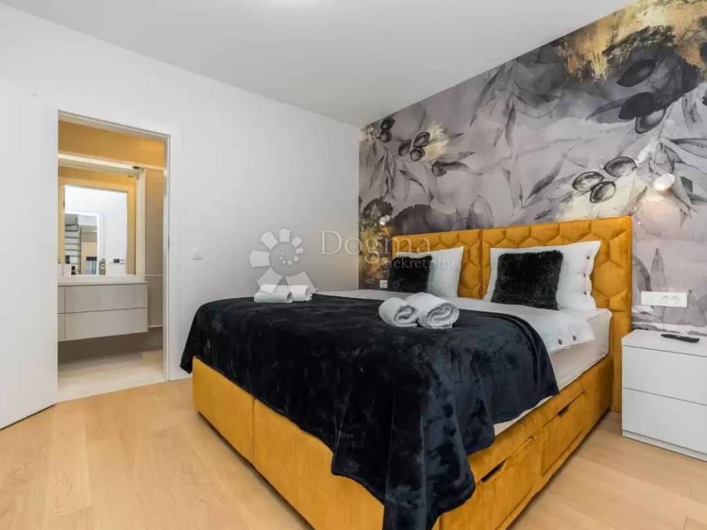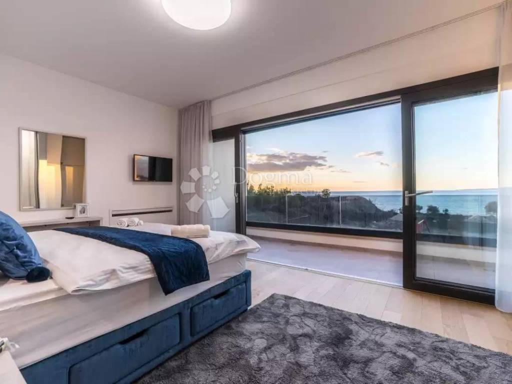 A staircase lined with quality oak wood 4 cm thick leads to the first floor, where there are four comfortable bedrooms, each with its own bathroom. Two rooms have access to the balcony with a view of the sea and nature around the house. Each room has been designed with special attention to comfort and practicality, equipped with custom-made furniture, while the master bedroom has its own wardrobe.