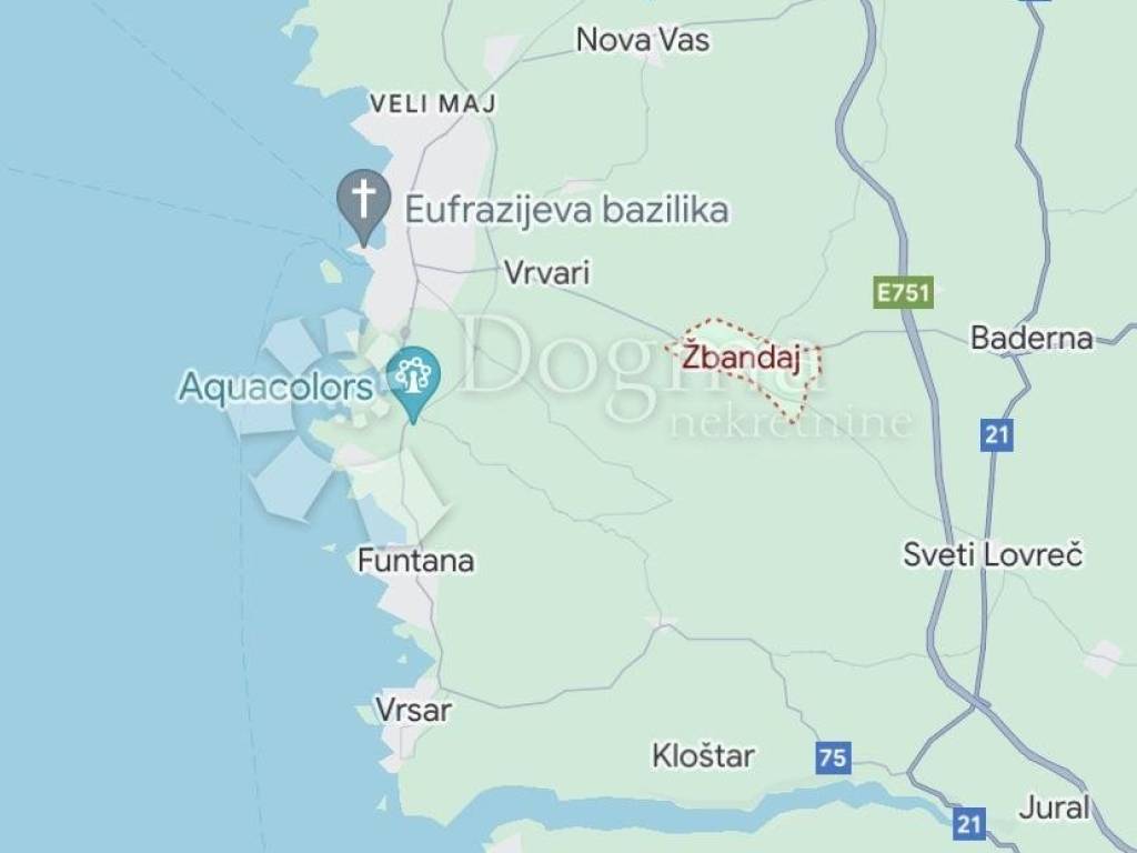 Mediteranska parcela locirana je u naselju Žbandaj, samo 2 km udaljenog od mora i obala Poreča. Ova poljoprivredna parcela, idealna za sadnju maslina i mediteranskog bilja, pravokutnog je oblika i ravna, uz lako dostupan pristupni put.
