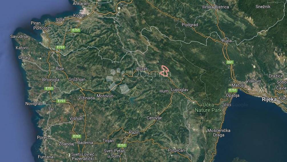 Roč - prodajemo gotovo ravan teren, južnom stranom vezan uz javni put (ucrtan u katastar) za koji je predan Zahtjev za prenamjenu dijela terena u građevinski, a za gradnju obiteljske kuće ili vile dozvoljene gradnje prizemlje + kat.