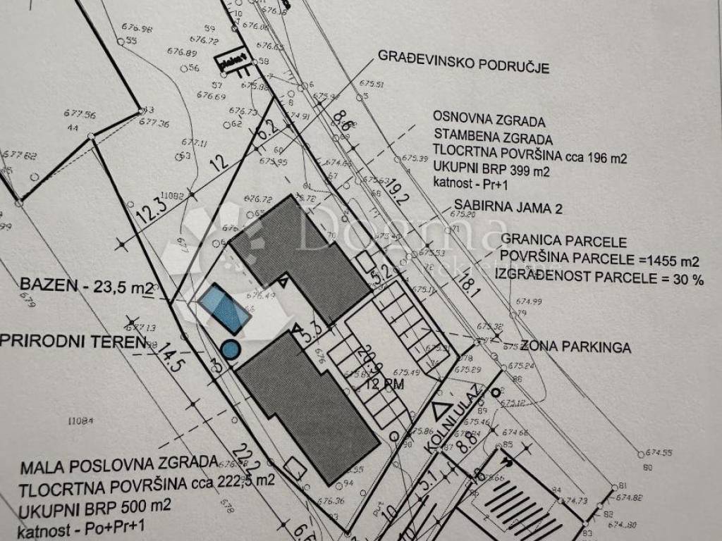 Ishodovan projekt za Kuca s velnesom + parking 398m2 i Poslovna zgradu s velnesom, vanjskim bazenom 24m i 13 parkirnih mjesta 500m2