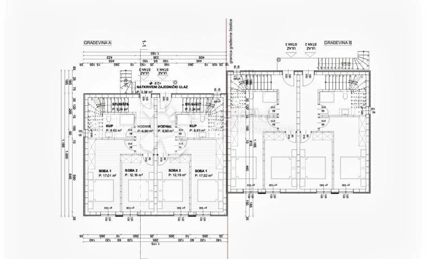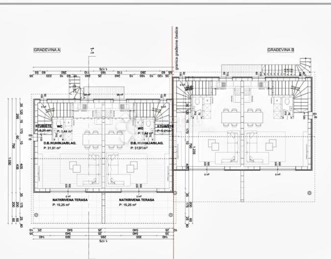 According to the property type, this is a spacious two-story apartment with a garden. The total area of this apartment is 86.73 m2. It consists of an entrance hall, 2 bedrooms and a bathroom. Internal stairs lead to the first floor where there is a toilet, spacious living room, kitchen and dining room. From the living room there is an exit to the outdoor covered terrace with a wonderful view of the sea.