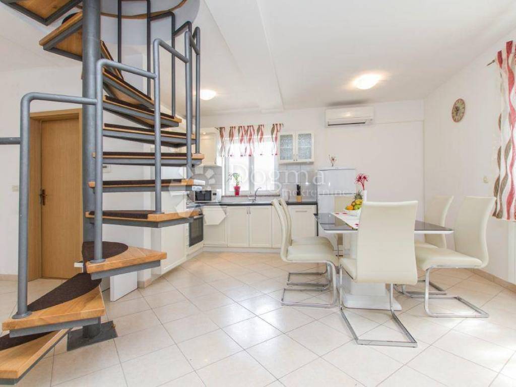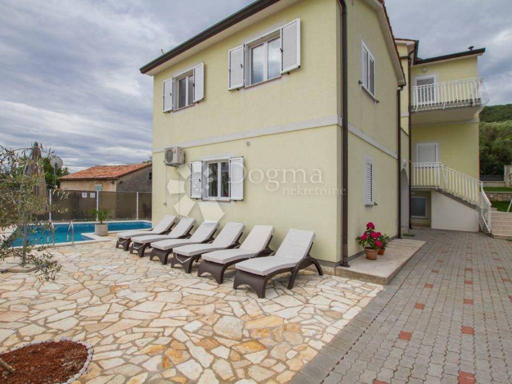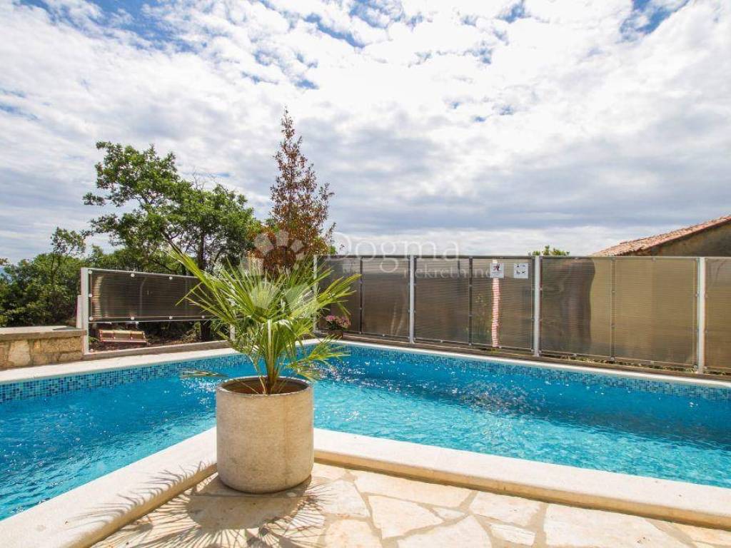 Beautiful Mediterranean house with pool, located in a small village near Labin, which rises on a hill above the sea. It consists of two buildings with separate entrances, connected to the room for recreation and socializing. From the first floor there is a beautiful view of the sea and the Kvarner Bay. You can reach a small beach in a small, narrow road in just ten minutes, while you can reach Ravni by car very quickly, where there are pebble and concrete beaches. In about 10 minutes drive you can reach Sv. Marina, which is known not only the sea but also the beach as a diving center. Nearby is Skitači, the highest point of the Labin region known for the source of St. Lucija, whose water, according to legend, is healing for the eyes, and the old town of Labin.
