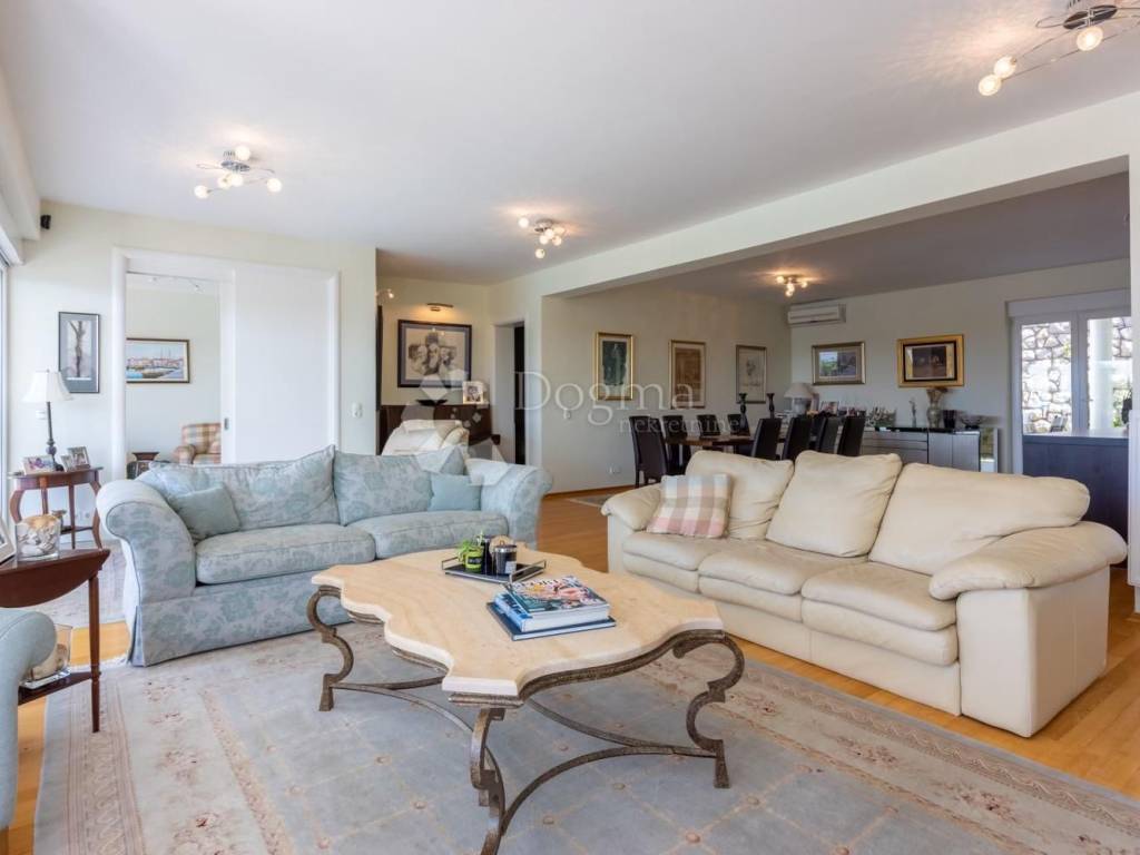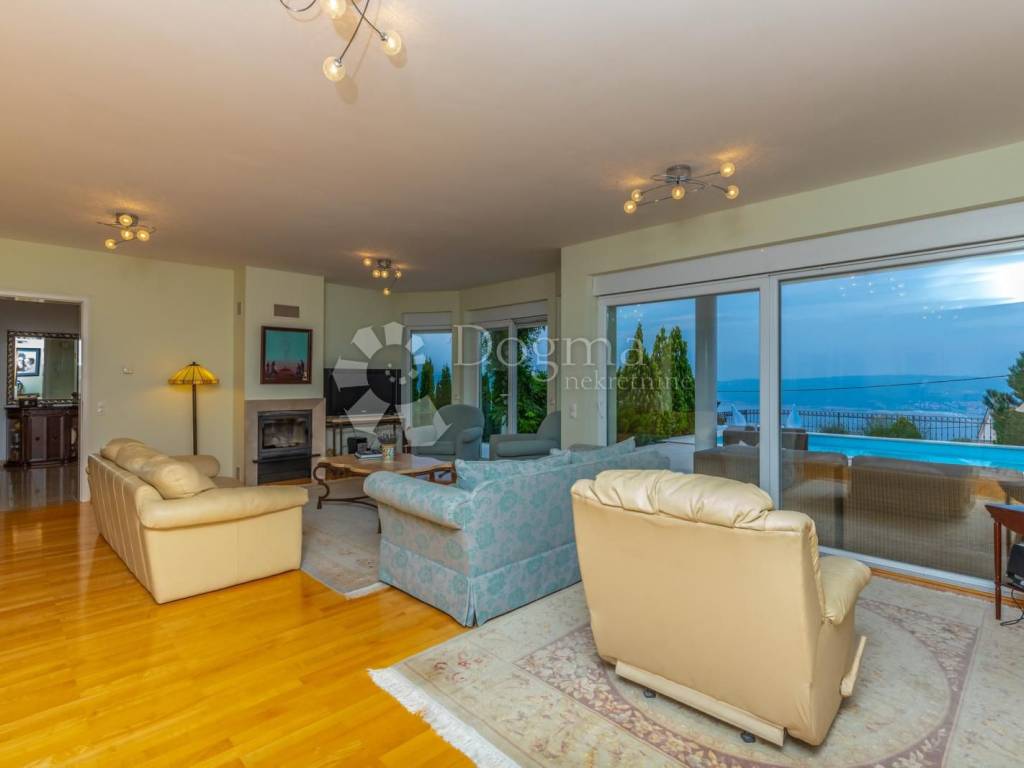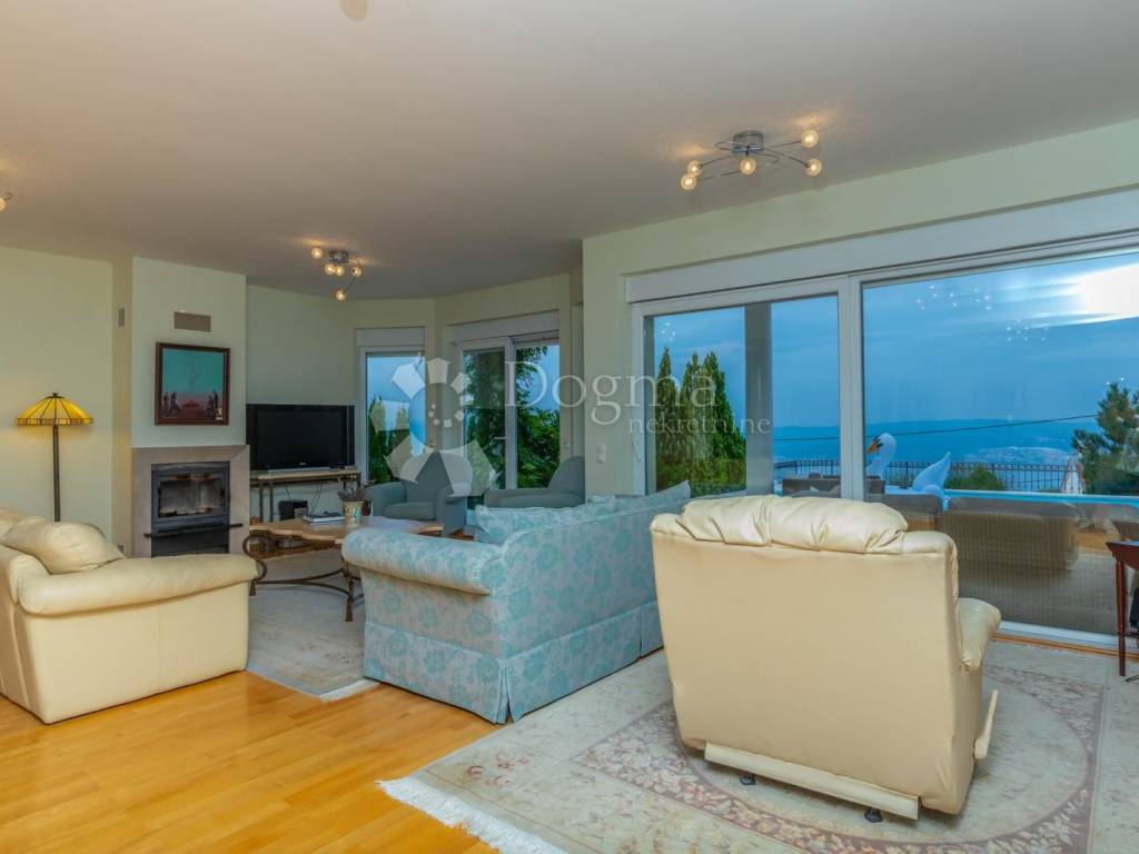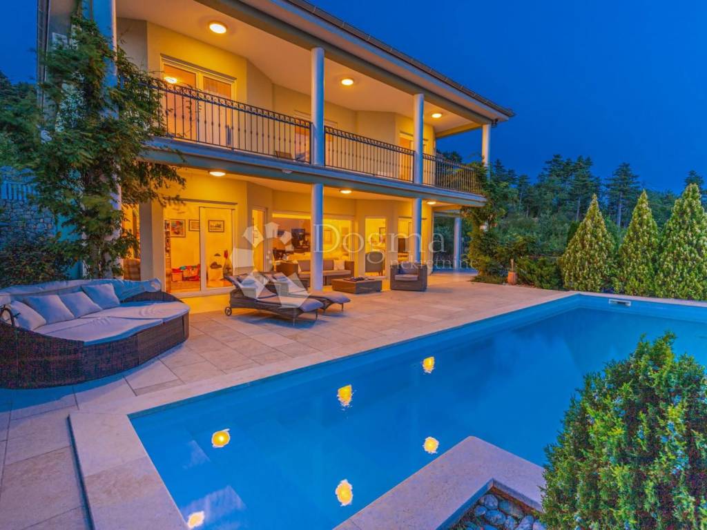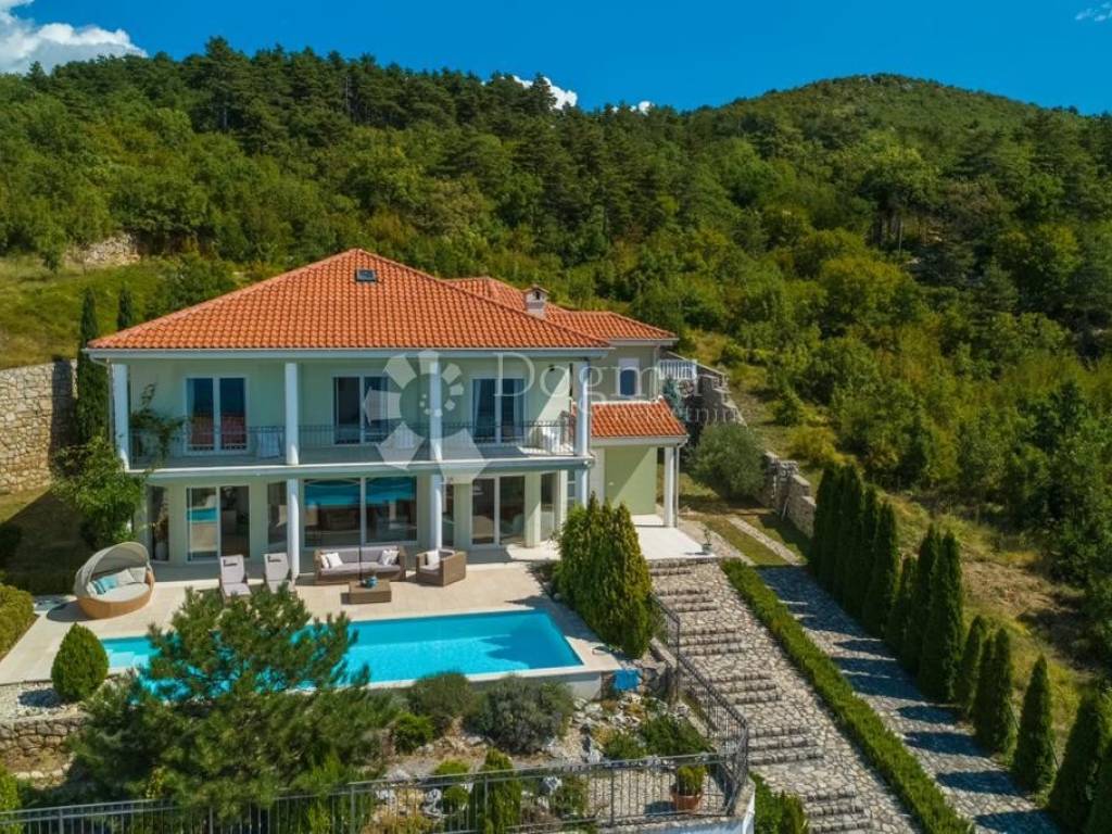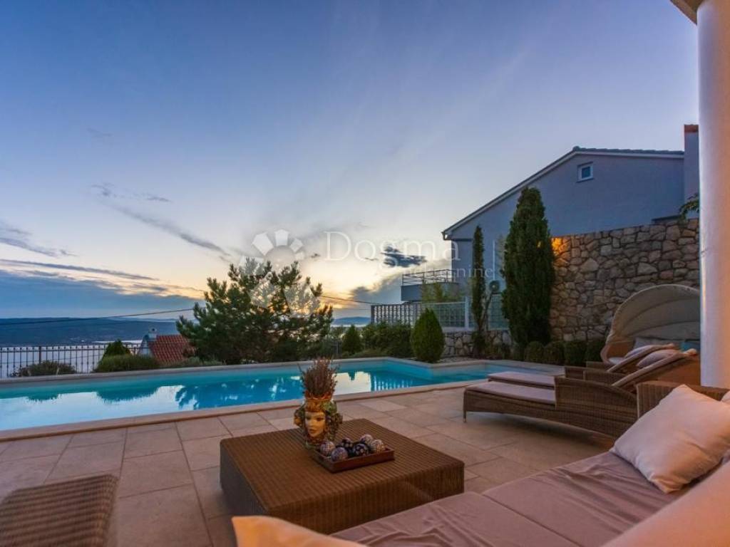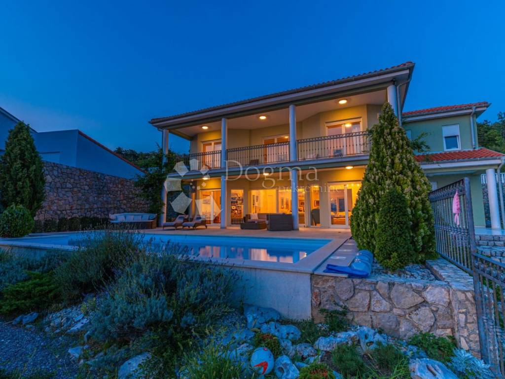 In an exclusive location above the town of Crikvenica, there is a superb property that will delight you with its spectacular view of the sea and the island of Krk. This amazing villa offers an extraordinary micro-location that guarantees complete privacy, since there are only a few luxury villas in the immediate vicinity. The advantage of this property is the fact that in front of the house there is a green belt on which construction is prohibited, so the new owner does not have to worry that his beautiful view will ever be hidden.