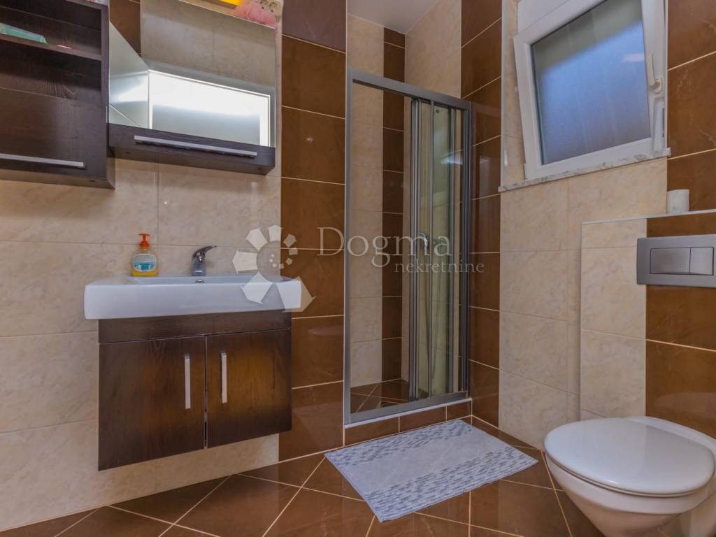 The villa has a total of five rooms and five bathrooms, providing enough space for a comfortable stay for family or guests. In the basement there is a part intended for socializing and recreation, while on the ground floor there is a living room, kitchen and dining room and one bedroom with a bathroom that leads to a beautiful terrace with a pool of 38 square meters and an open view of the sea. Upstairs there are four spacious bedrooms, each with its own bathroom, providing privacy and comfort.