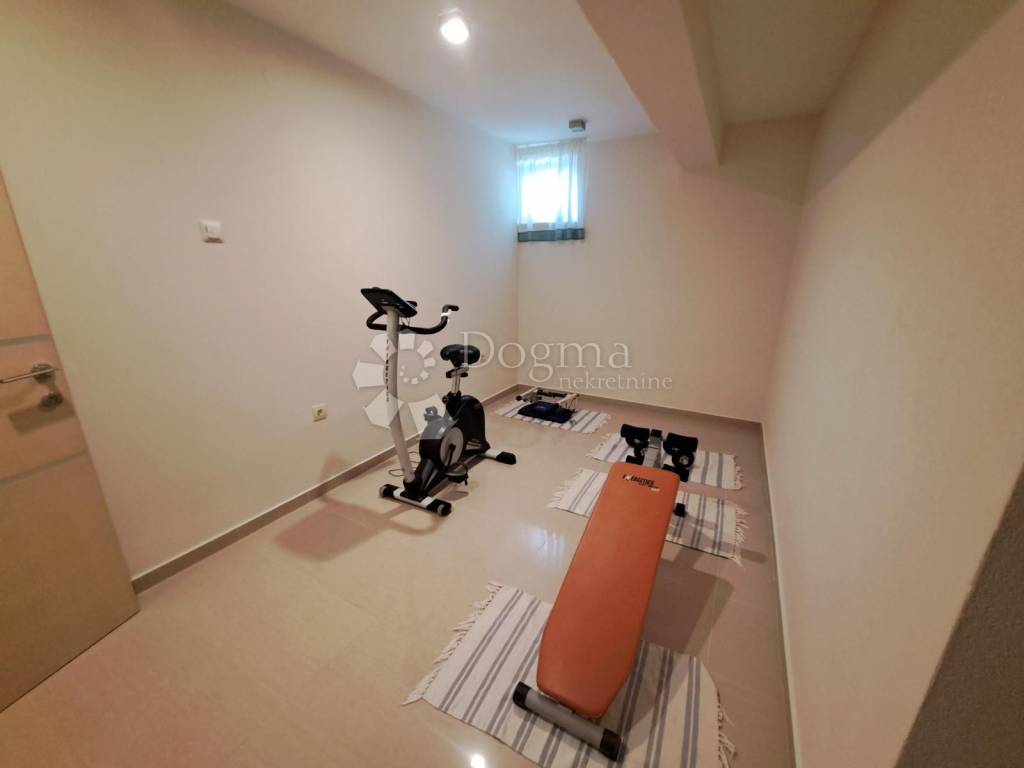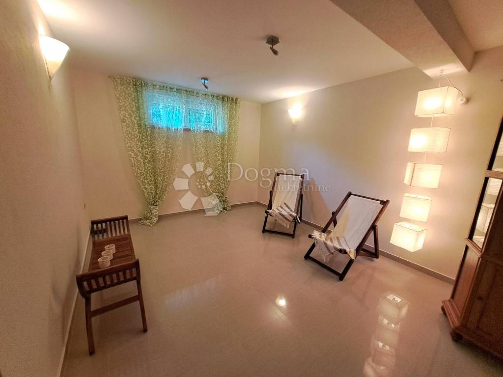We have a unique opportunity for you! For sale is an apartment in the basement with a surface area of 127.77 m2 and its own parking space. This apartment offers exceptional potential and diverse possibilities. The apartment consists of a spacious living room and kitchen that provide plenty of space for relaxation and socializing with family and friends. There is also a separate toilet for your convenience. Additionally, the apartment features one bedroom that will provide you with a peaceful and comfortable sleep. Furthermore, there are additional rooms such as storage space and a room for billiards and fitness that can be converted into additional bedrooms according to your preferences. One of the special features of this apartment is the wellness area that includes a sauna. This additional amenity will allow you to relax and enjoy moments in your own private oasis. The location of the apartment is excellent, only 200 meters away from the sea. Enjoy the fresh sea air and beautiful views. Moreover, all essential amenities can be found in close proximity, making this apartment an ideal choice for those who want to live near all conveniences. This opportunity should not be missed! Whether you are looking for a living space or an investment with high potential, this apartment provides you with everything you need.
