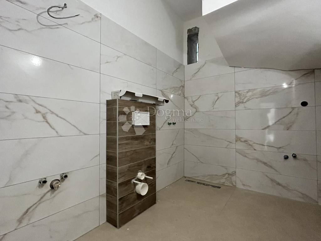 The studio apartment of 40 m consists of a bathroom, a kitchen, a spacious living room connected to the dining area and an exit to the garden of 8 m2, and a newly renovated internal stone staircase leads to the family apartment on the first floor of 60 m, which consists of a bathroom, a kitchen , two bedrooms, a living room and a terrace of 10 m2 in which there is an Old Istrian barn, which is a real rarity today, and represents one of the landmarks of Old Istrian towns. The apartments are equipped with new, high-quality PVC joinery (walnut). The mezzanine structures are all concreted and reinforced. The electricity and water installations were done anew, as well as the roof, and the future property owner is given the option of choosing a tile or laminate design as part of the price, while during the renovation of the property, attention was paid to every detail, and stone details were left that give the right touch. Each apartment has an air conditioning unit. The property is sold with the first phase completed, room and entrance doors installed, floors, ceramics, and the second phase of the bathroom. There is a possibility of buying the entire house with four apartments.