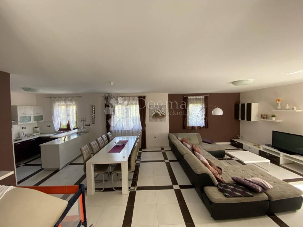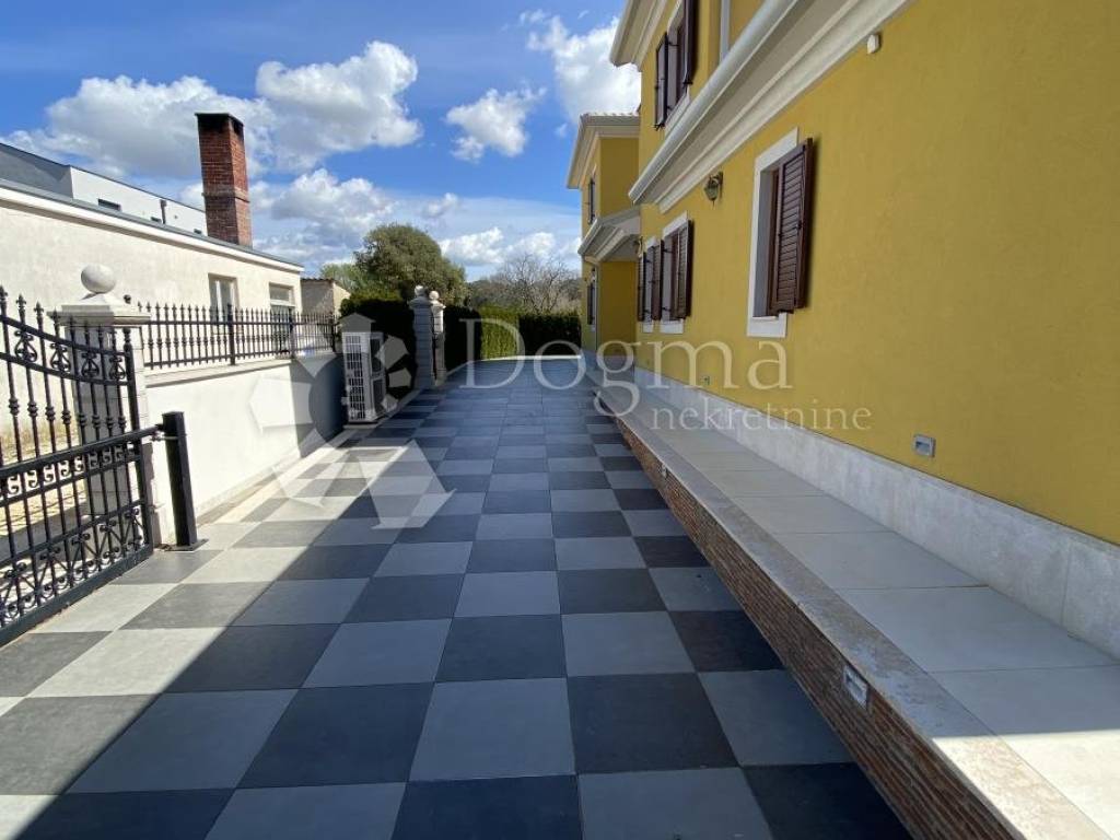 The yard of this house is a special oasis for relaxation and entertainment. With an area of 543 m2, it is divided into two parts. The entrance area offers enough space to park five cars, ensuring convenience and practicality for owners and guests. The second part of the yard is intended for enjoyment and relaxation with a beautiful terrace that includes an outdoor kitchen and a large swimming pool. This is the perfect place to spend summer days, enjoying a refreshing swim and hanging out outdoors.