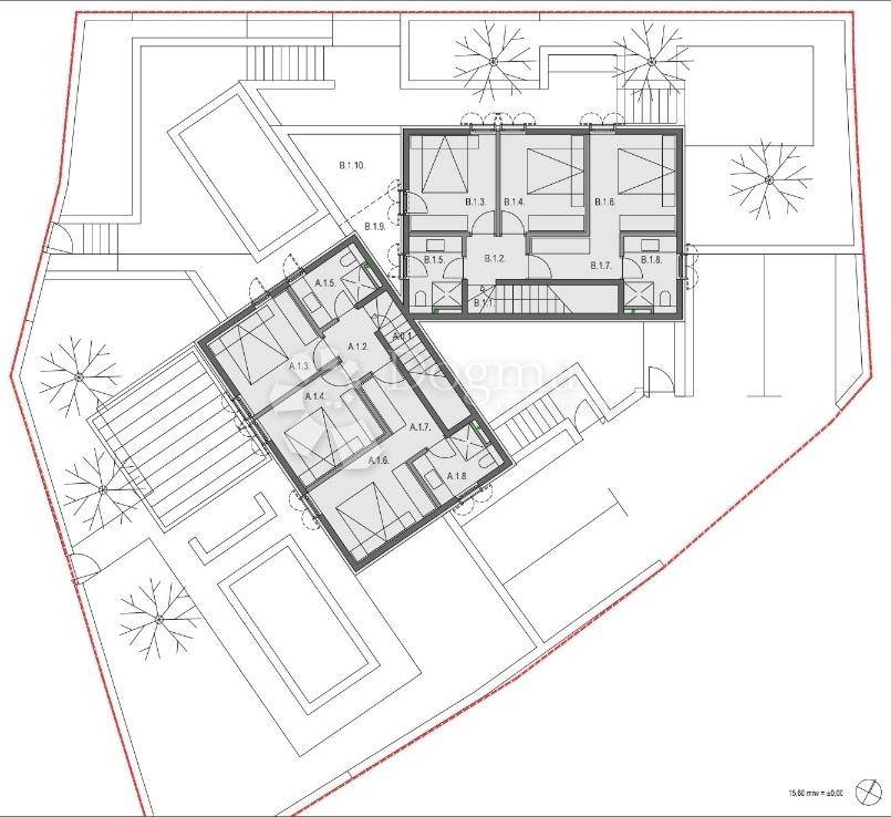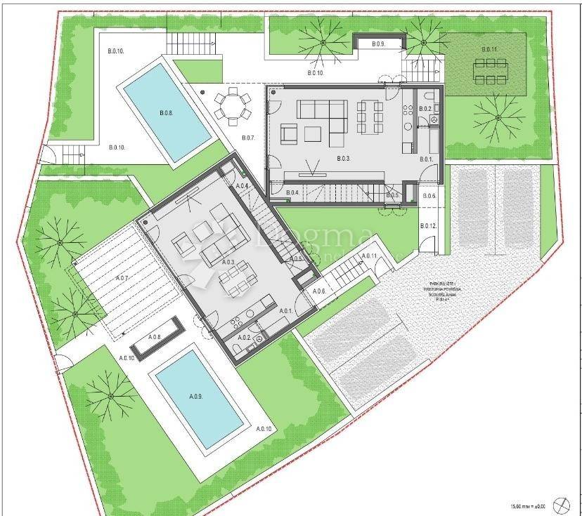 The villa consists of two residential units, each with a swimming pool, sunbathing area, terrace and barbecue.
