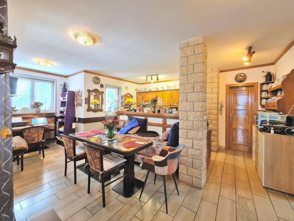 On the first floor is a spacious apartment with a large living room with kitchen and dining area, which have 2 balconies, two bedrooms with their own balconies, bathroom, toilet and hallway.
