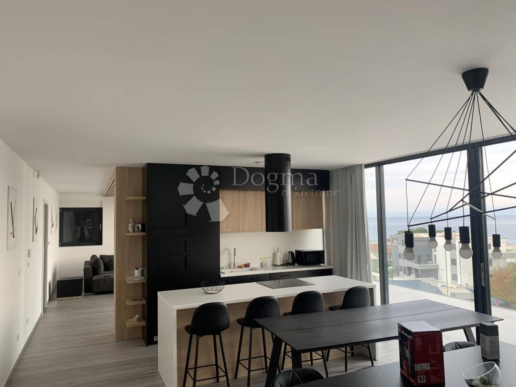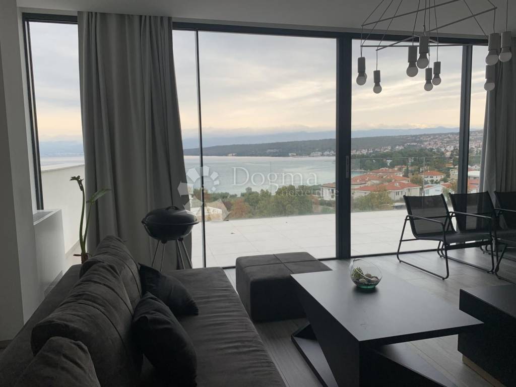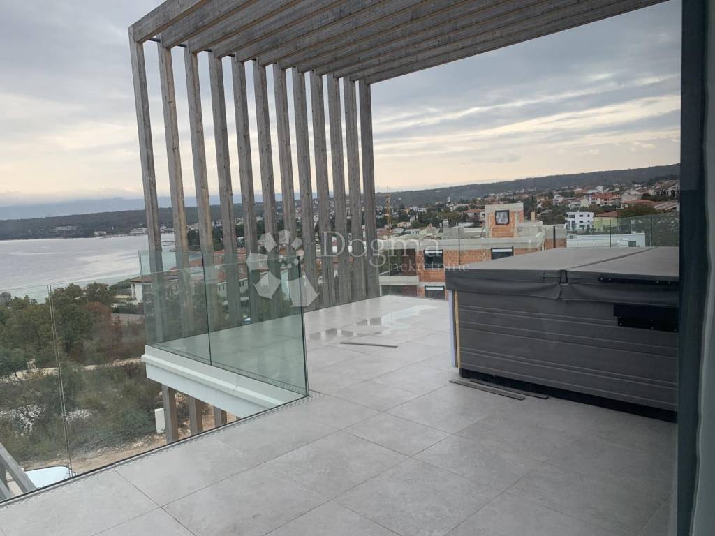 In a quiet beautiful place among beautiful villas and buildings in Malinska, just 100 meters from the sea is located this beautiful penthouse on the second floor of a small newly built building. With a separate entrance from the ground floor, a private elevator leads into the hallway of the apartment, from which a panoramic view extends over the open-space conceived living space, kitchen, dining room and a huge terrace with jacuzzi. To the right the hallway leads to the more intimate part of the penthouse, with 4 bedrooms with bathrooms and exits to the balcony. In the comfortable 212 square meters, a recreation room is also offered.