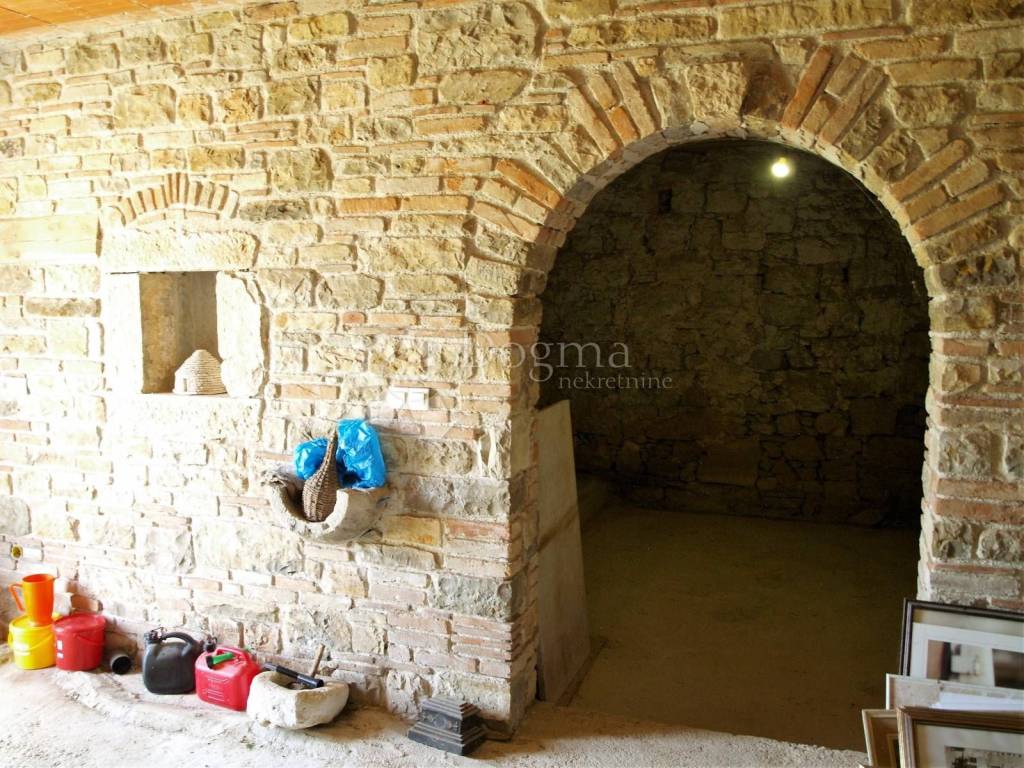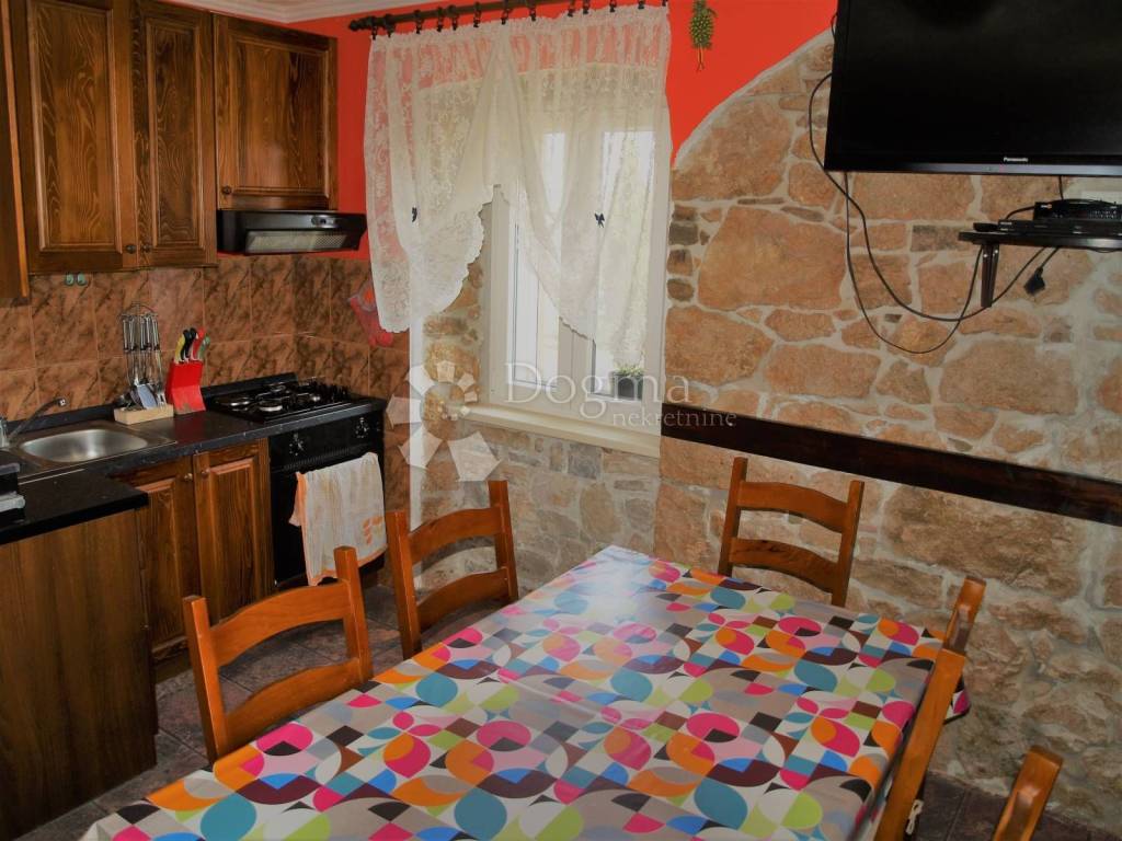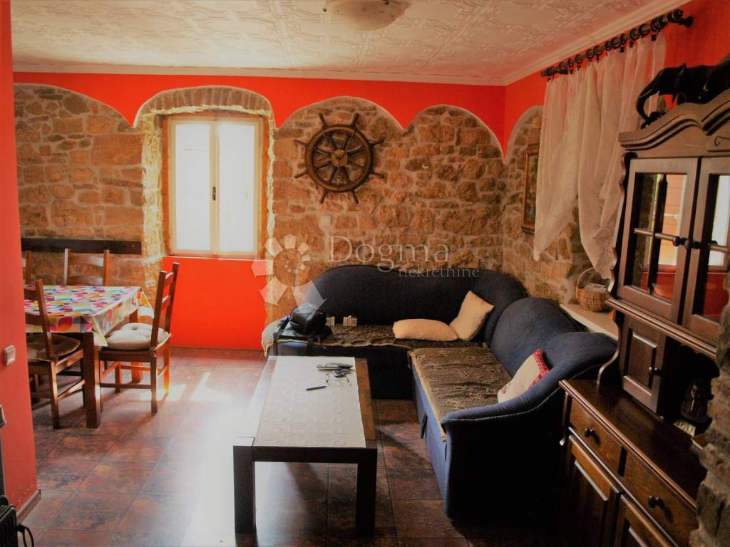 Stone house on the outskirts of the village, unfinished. The ground floor is fully finished and consists of a living room, a bedroom, a kitchen with a dining area and a bathroom. The first floor is actually an attic that needs to be arranged or finished. In the basement there is a lot, for now, unused, quality space that needs to be arranged and can be used for various purposes. The house is in a good location and has great potential for its further development and use.