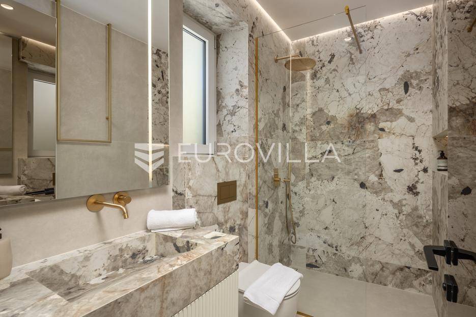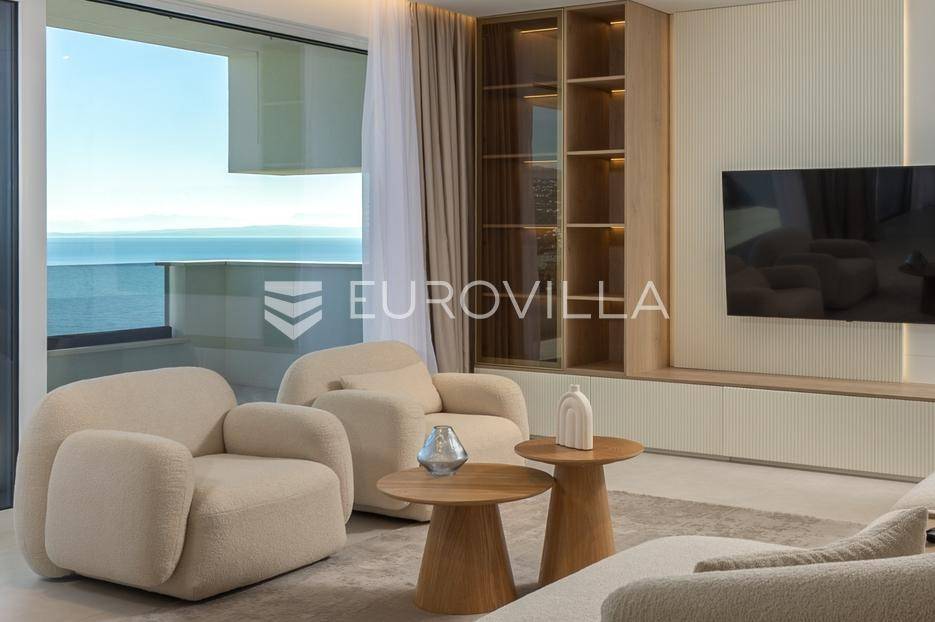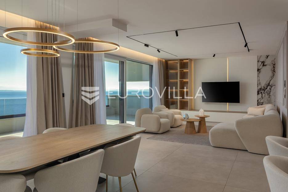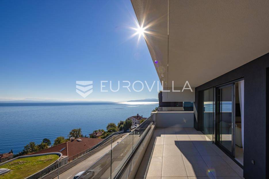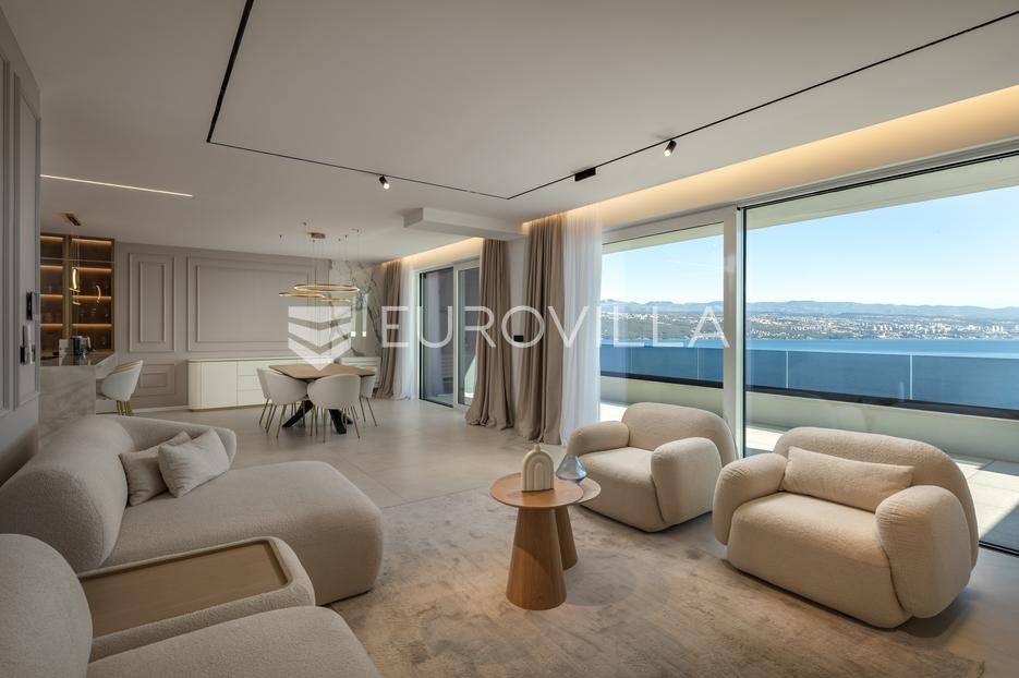 Četverosoban stan s pogledom na more u Opatiji NKP 142.87 m2 predstavlja luksuznu nekretninu koja je idealna za one koji žele uživati u prekrasnom mediteranskom ambijentu.Ovaj luksuzan stan sastoji se od tri spavaće sobe, dvije kupaonice, ostave, open space kuhinje s blagovaonicom i dnevnim boravkom koji izlaze na prostranu terasu s pogledom na Kvarner.Stanu također pripadaju dva parkirna garažna mjesta i spremište, sveukupne BKP 173.01 m2.Stan se nalazi u novogradnji, te je opremljen najsuvremenijom opremom i visokokvalitetnim materijalima. Svaka soba je pažljivo uređena s modernim namještajem i prozorima koji omogućuju obilje prirodne svjetlosti.Jedna od najimpresivnijih karakteristika ovog stana je pogled na more. Iz dnevnog boravka, terase ili prozora možete uživati u panoramskom pogledu na Jadransko more, zalaske sunca i brodove koji prolaze. Ovo je savršeno mjesto za opuštanje i uživanje u prekrasnom krajoliku.Opatija je poznata kao jedna od najprestižnijih destinacija na Jadranu, a ovakav stan nudi savršen spoj elegancije, udobnosti i spektakularnog pogleda na more.Ovaj četverosoban stan s pogledom na more predstavlja idealnu nekretninu za one koji traže luksuzni životni stil na obali Jadranskog mora.Ostale informacije na upit.