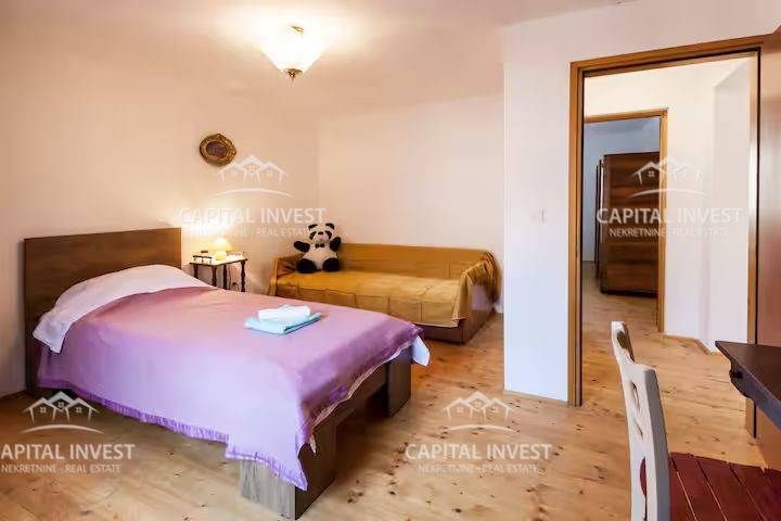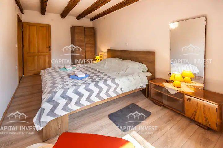 The house stands out due to a 2020 renovation, which ensures a modern and functional space. It is situated on a plot of 160 m2 and features four bedrooms, a living room, a kitchen with a dining area, and two bathrooms, providing ample space for family life or comfortable accommodation for a larger number of occupants.
