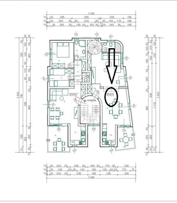Stan S4 ( na tlocrtu označen crnom bojom / ZGRADA A ) sastoji se na prvoj etaži od ulaznog prostora površine 2,79 m2 , kuhinje površine 4,86 m2, blagovaonice površine 15,64 m2 , dnevnog boravka površine 19,41 m2 , kupaonice površine 3,13 m2 i terase površine 6,17 m2. Na toj etaži prostor zauzimaju stepenice površinom 3,07 m2 i 1,20 m2.