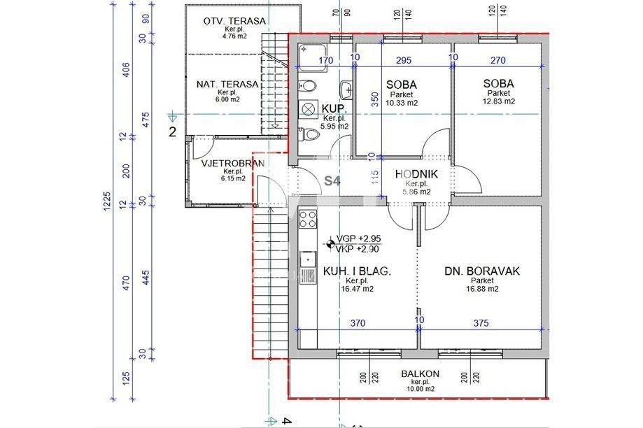 Također prodaje se i 200 m2 dvorišta koje pripada stanovima, a smješteno je uz zgradu te se po potrebi može urediti ili namijeniti za parkirna mjesta.