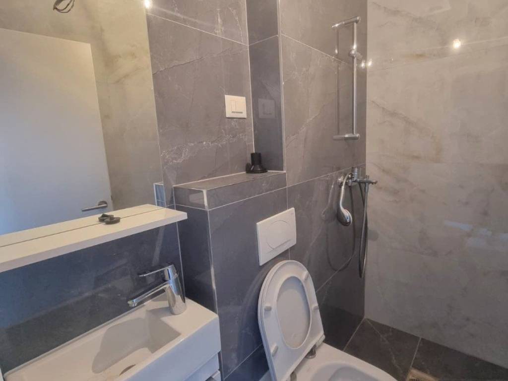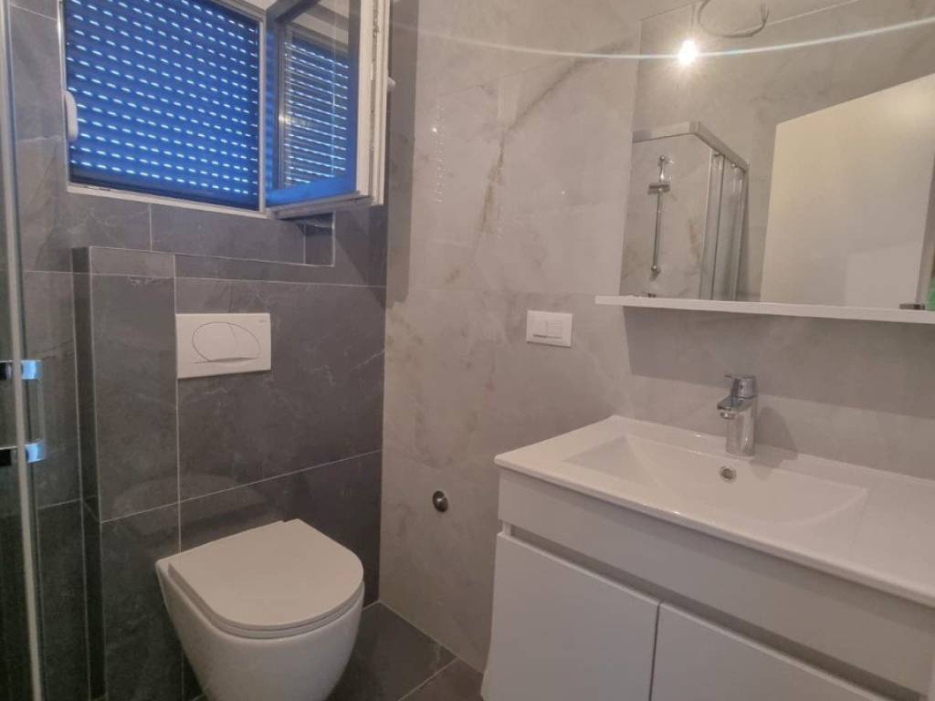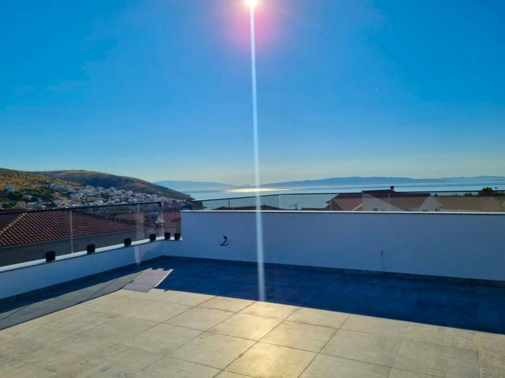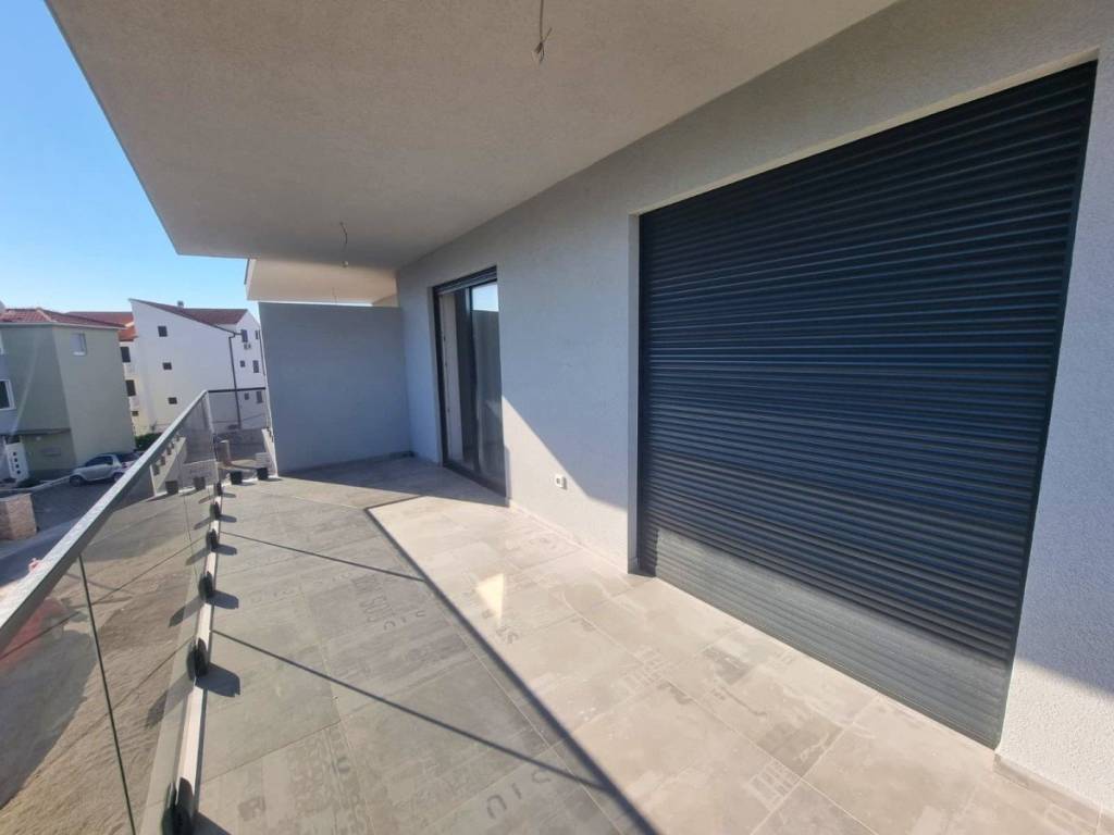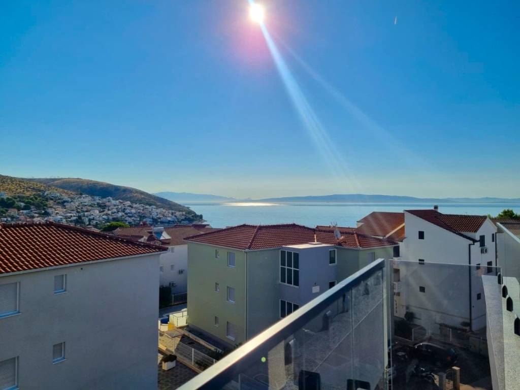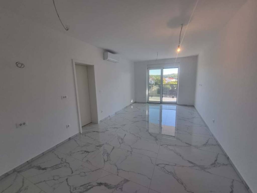 Two apartments for sale in a smaller residential building with basement, ground floor and two floors. The building contains a total of four residential units and two business premises. The apartments for sale are located on the first and second floors. The apartment on the first floor has a living area of 55 m2 and a covered balcony of 15 m2, and consists of: hallway, two bathrooms, small storage, living room with kitchen, hallway and two bedrooms. The apartment on the second floor has the same layout, and it also has a roof terrace of 70 m2. From the roof terrace there is a sea view. The building is in the phase of final works, the completion of the legal documentation is expected by the end of the year. The apartments are equipped with underfloor heating, air conditioners are installed in the living room and bedrooms, electric blinds and mosquito nets are installed. The apartment has one outdoor parking space.The price of the apartment on the first floor: 220,000 euros, the apartment on the second floor: 270,000 euros.Distance from the first beach: 650 m (8 min walk), from the center of the village 350 m (5 min walk), 8.5 km from Split airport (17 min by car).