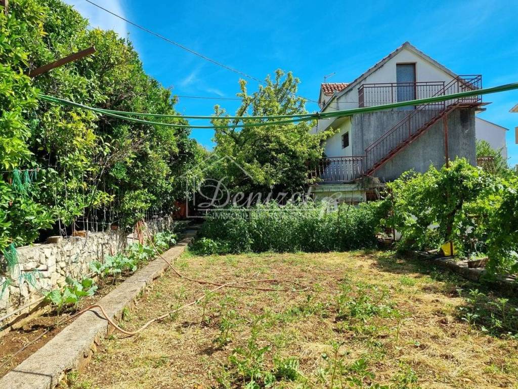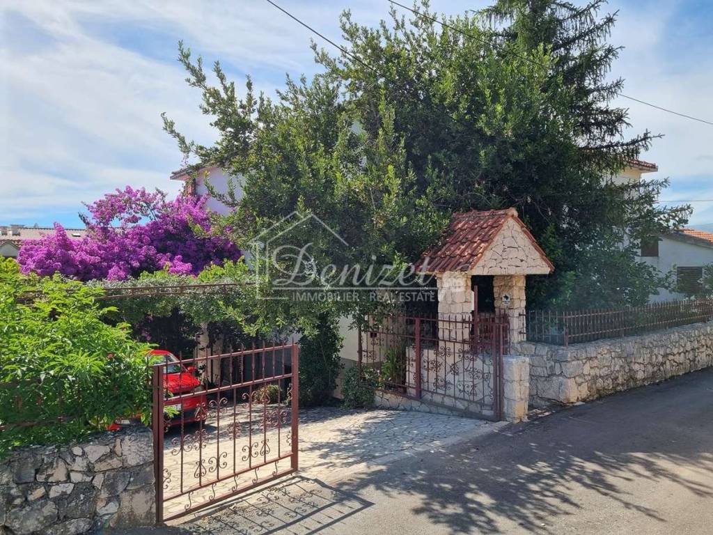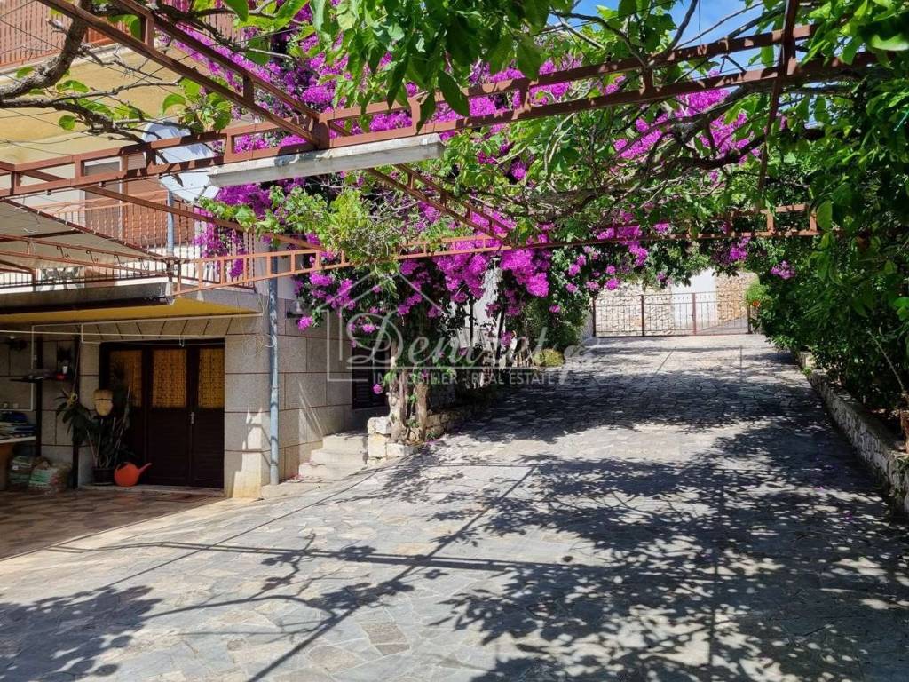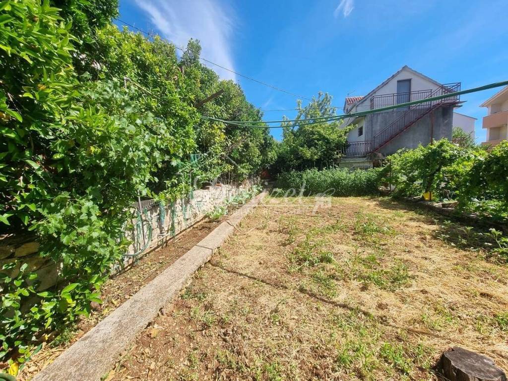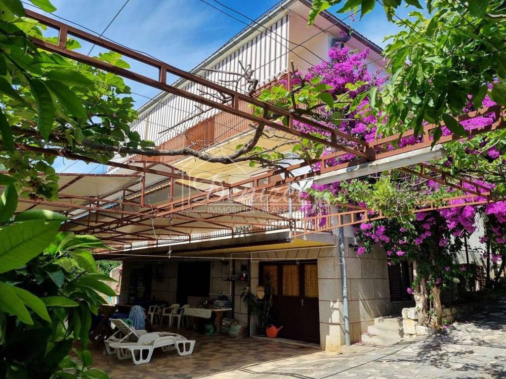 On a spacious plot of 1055 m2 there are two houses - one fully furnished and ready to move in, and the other is an unfinished house in the roh-bau state. The property is located near the sea, the beautiful main beach and the center of the village. It is just 150 m from the sea and the beach.House 1A furnished and ready-to-move-in property, a house with a total gross area of 474 m2, and extends over three floors: basement, ground floor and first floor.The basement contains living room with kitchen, one bedroom, a bathroom, a boiler room, a cellar and a storage room, as well as a summer dining room and a spacious covered terrace ideal for outdoor gatherings.On the ground floor there are three bedrooms, a kitchen and a living room with a terrace and two bathrooms.On the first floor there are five bedrooms and three bathrooms.The floors are connected by an internal staircase. The upper floors of the house offer a beautiful sea view. The house also has a 25 m2 garage.This property is of older construction and requires additional investment and renovation.House 2An unfinished house with a total gross construction area of 185.61 m2, and extends over three floors: ground floor, first floor and attic. The floors are connected by an external staircase.The ground floor (66.98 m2) contains an apartment consisting of a living room, kitchen, dining room, one bedroom, bathroom and tavern.On the first floor (60.27 m2) there is a living room, kitchen and dining room, one bedroom, bathroom and toilet. This apartment has access to a terrace.The attic offers a space (58.36 m2) that can be converted into an additional residential unit.The house has a beautiful well-maintained green garden. The yard offers enough space for building a swimming pool and parking spaces. The land offers a sea view. The house is legalized as an unfinished building and requires a completion project.This property offers many possibilities – whether you are looking for a home, a holiday house or an investment for a tourist rental. The location, area and many possibilities it offers make this property extremely attractive. It is only 3 km from the center of Trogir, and 9 km from Split airport.